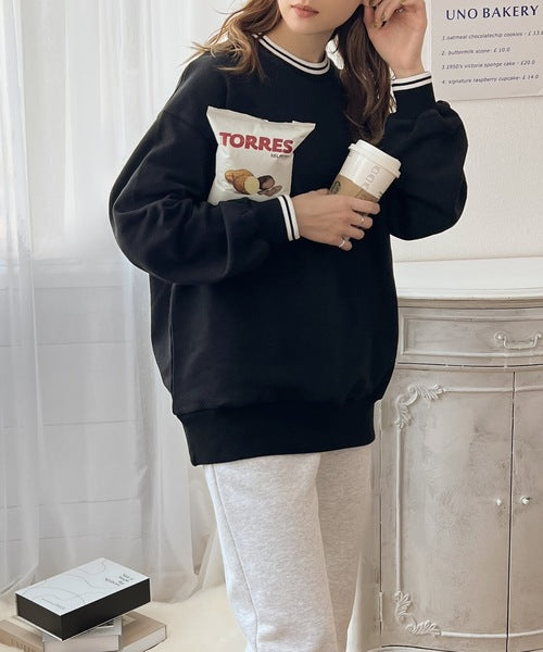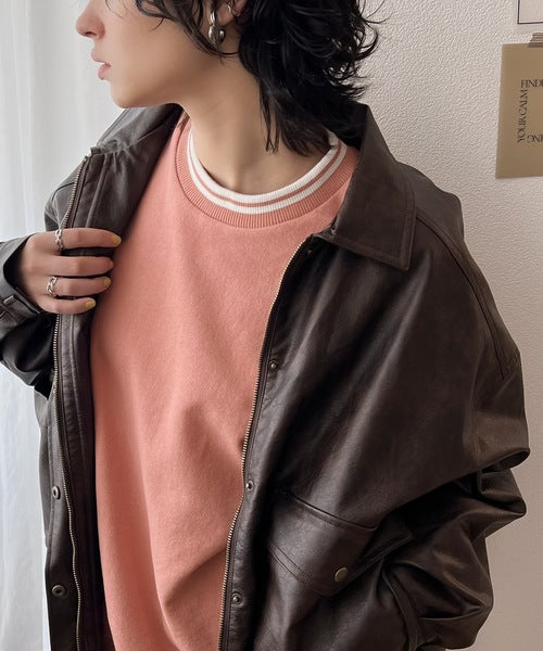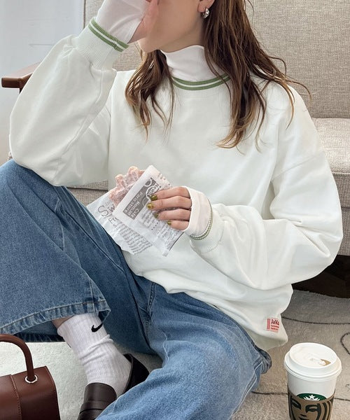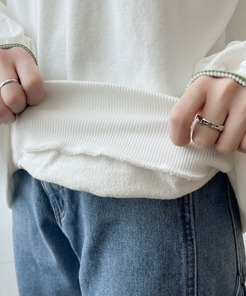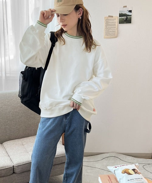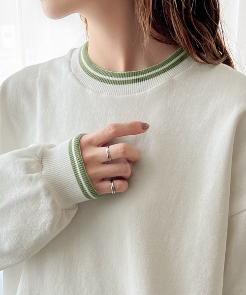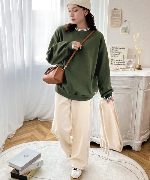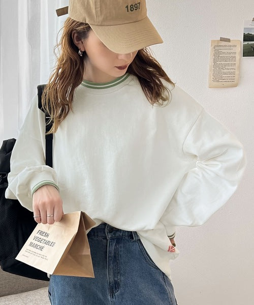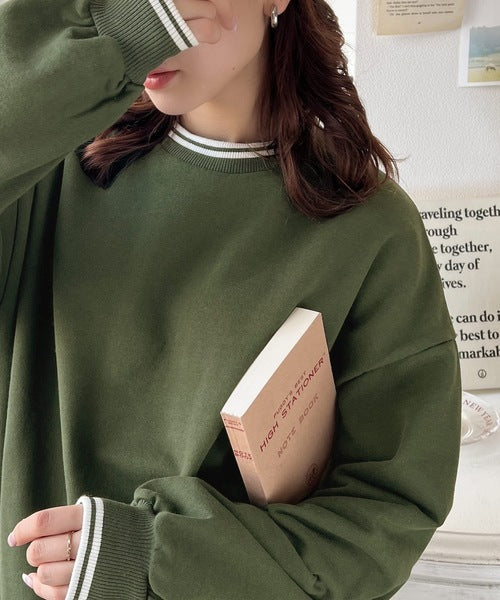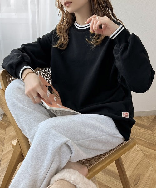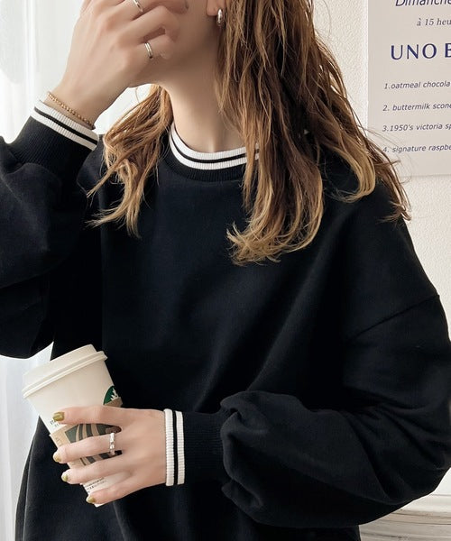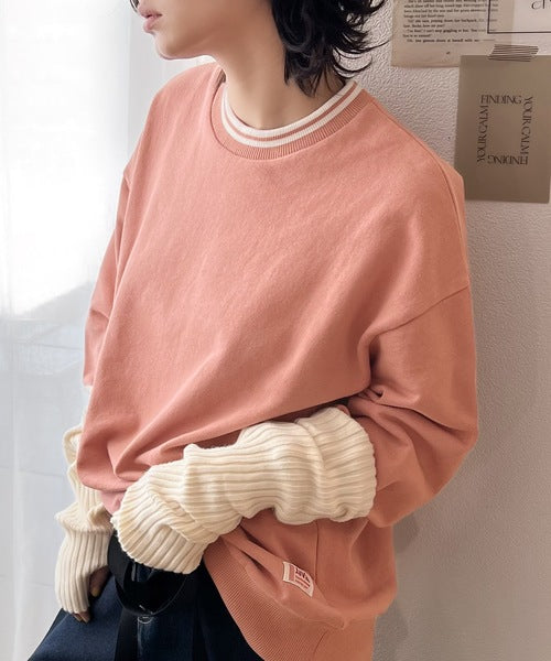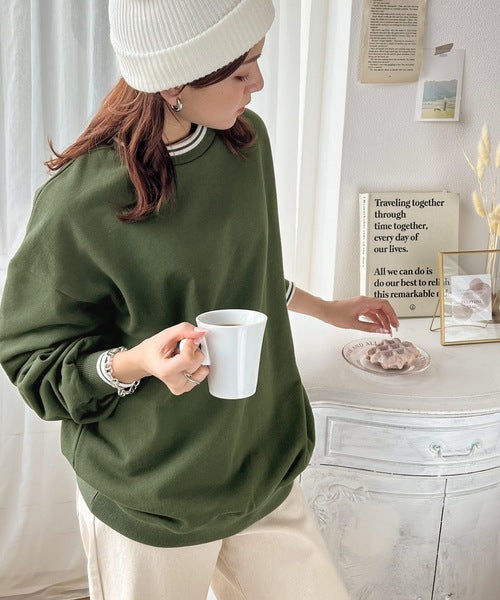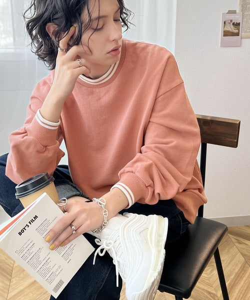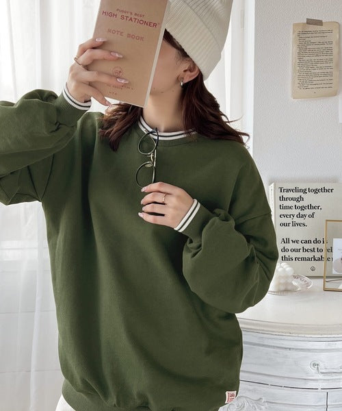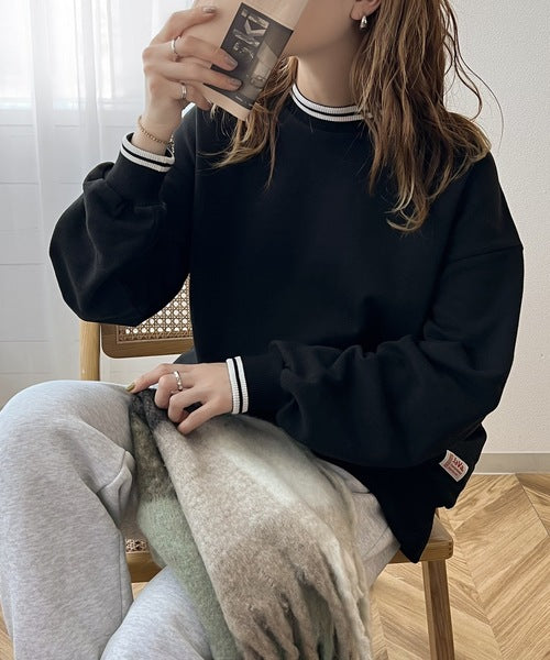 《JaVa ジャバコラボ》冬の優秀アイテム。綿100%配色リブ裏毛スウェットプルオーバー jv1010178