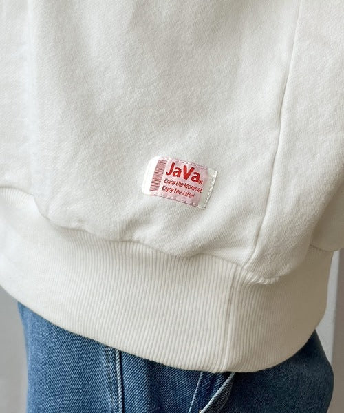 首周り、袖口の配色リブラインとJaVaワッペンがアクセントになり、