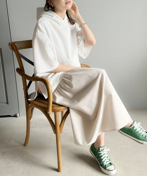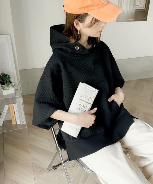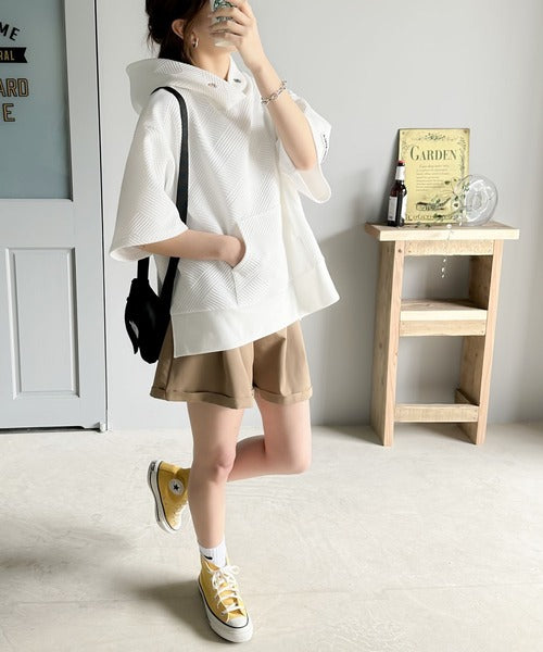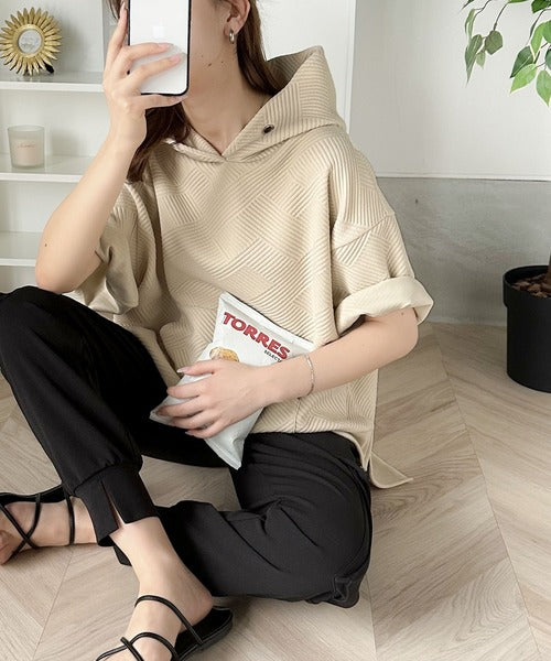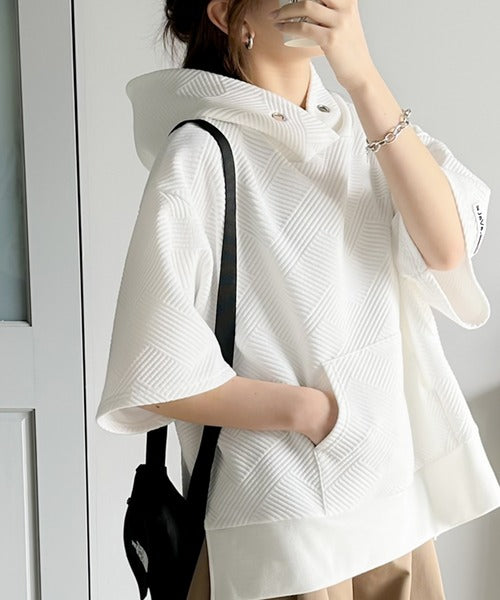 サイドスリットや前後差丈でメリハリをプラスした半袖パーカー。