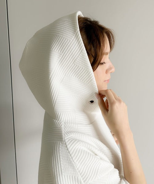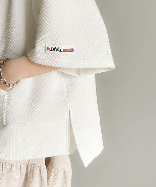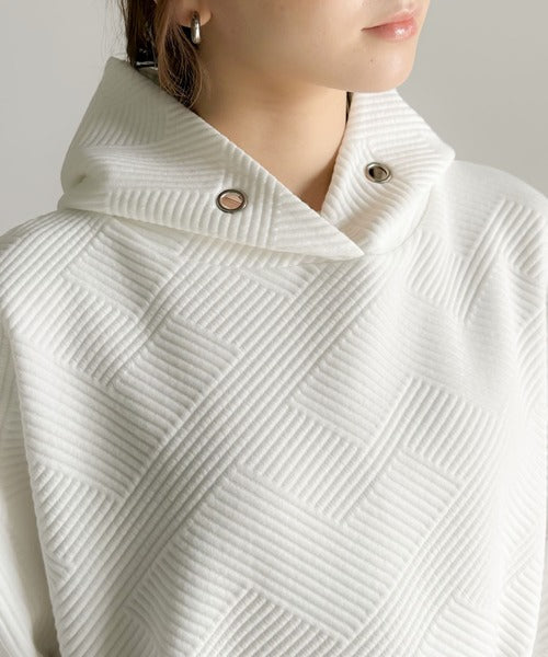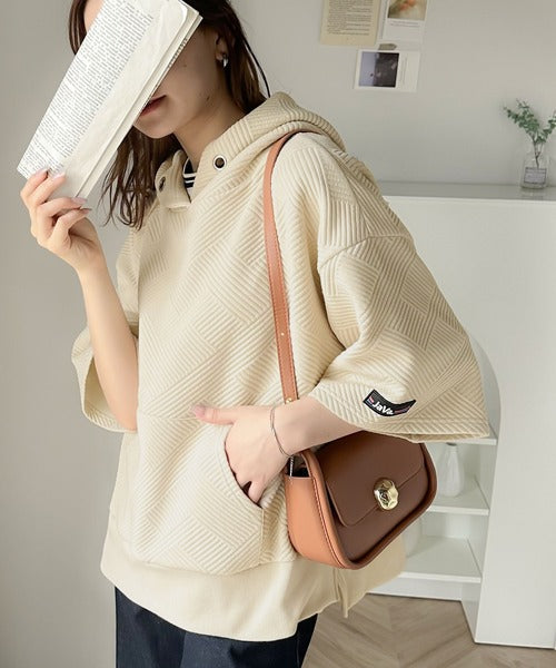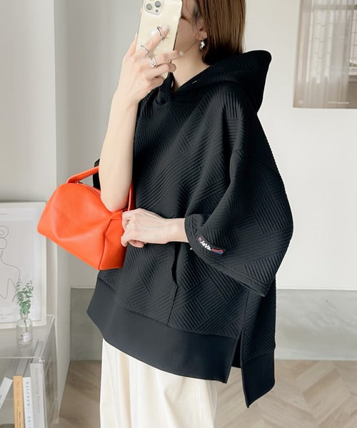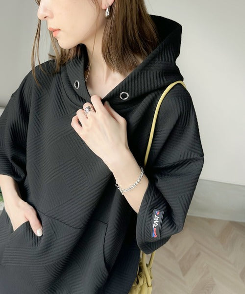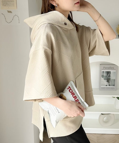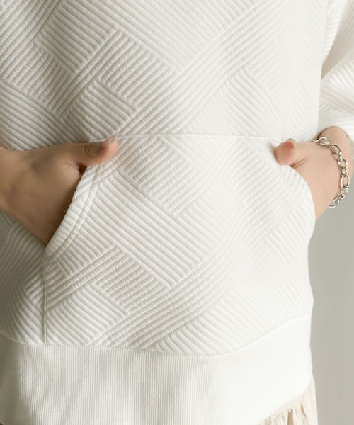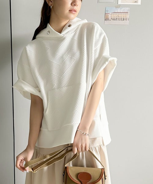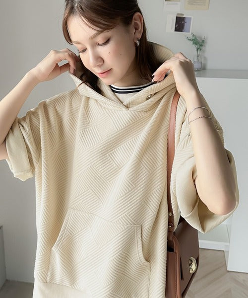 凹凸感のある斜めストライプ柄が目を引く半袖パーカー。