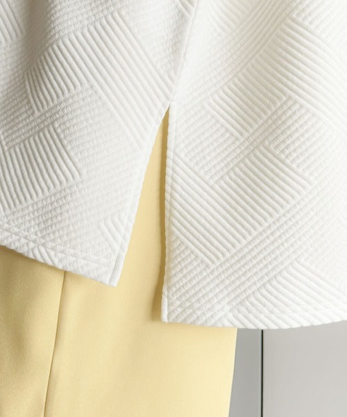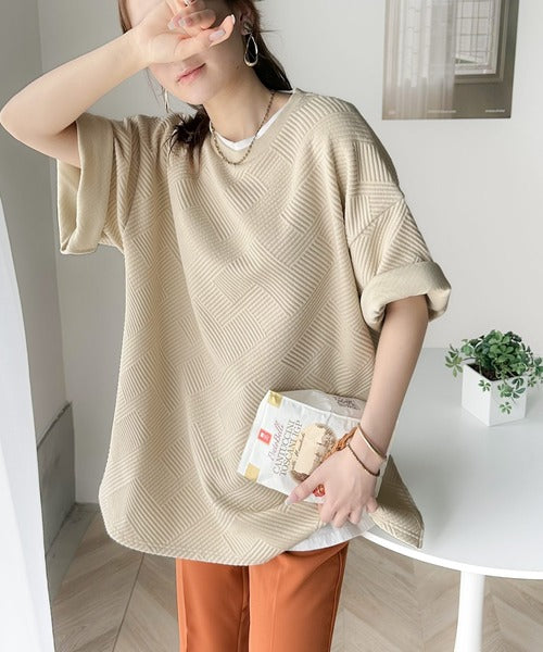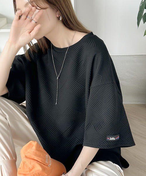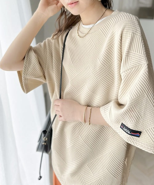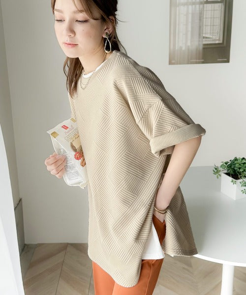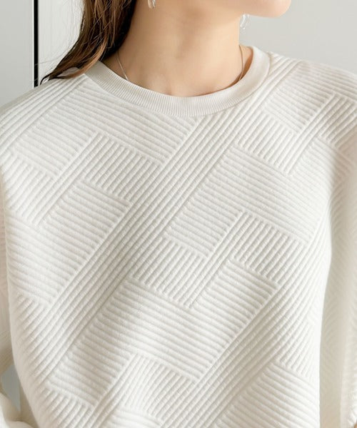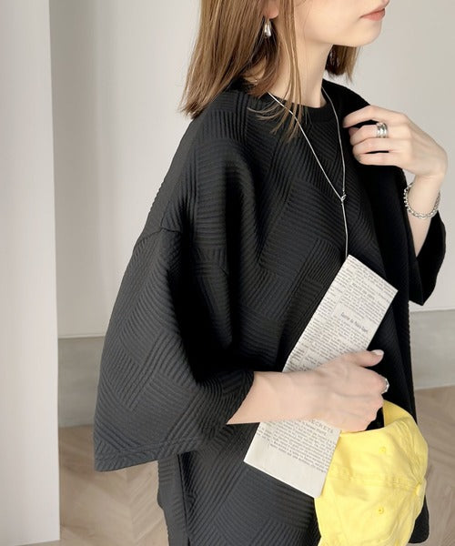 凹凸感のある斜めストライプ柄が目を引く半袖プルオーバー。