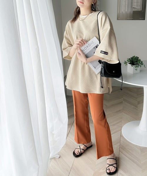 サイドスリットや前後差丈でメリハリをプラスした半袖プルオーバー。
