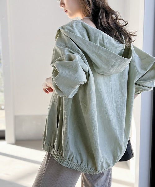 綿100%のゆったりシルエットのライトパーカー。