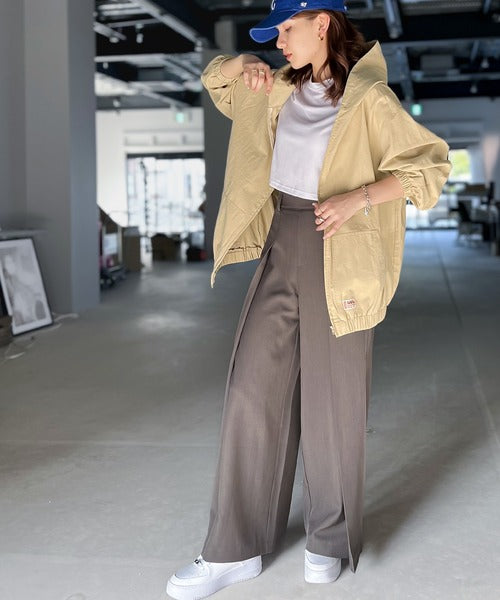 ワイドパンツやワイドスラックスと合わせたちょっと”はずした”着こなしが今流。