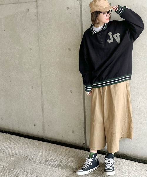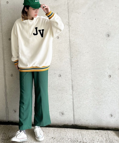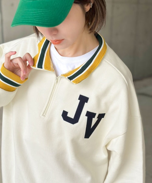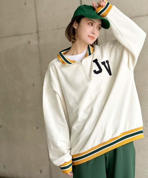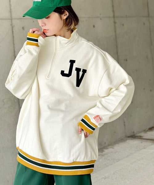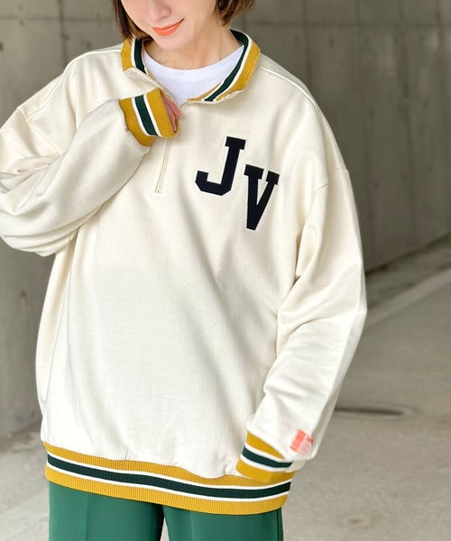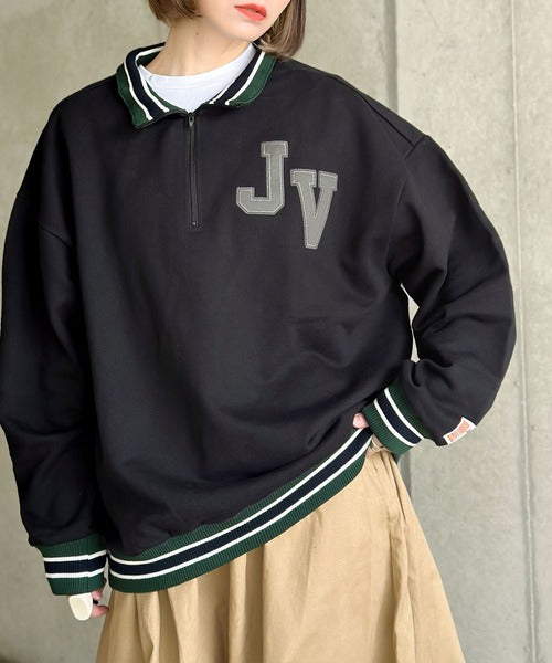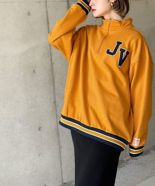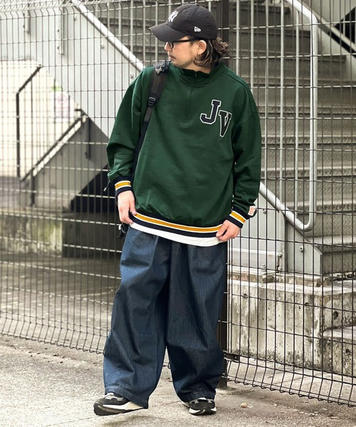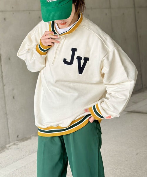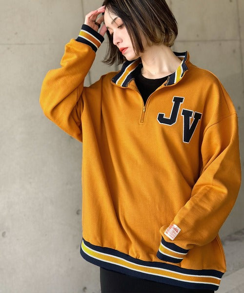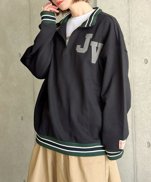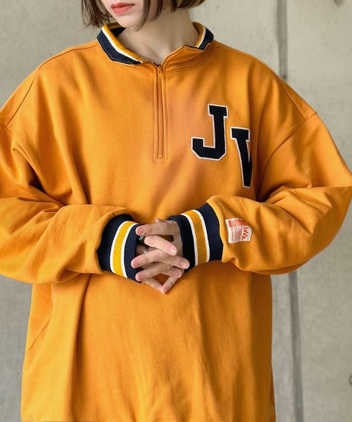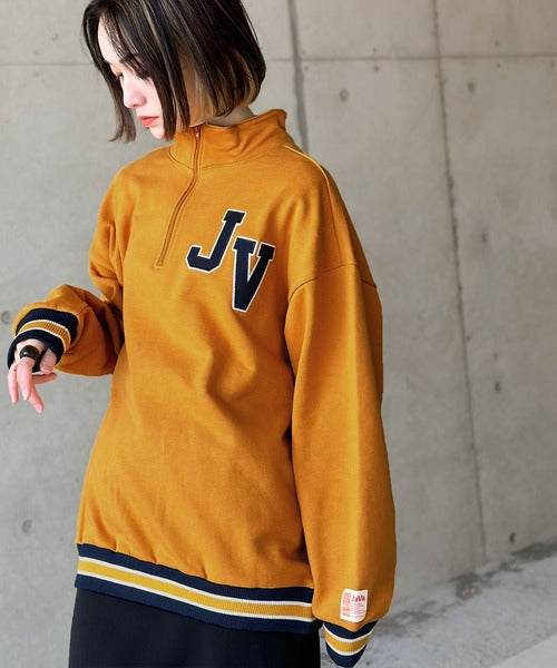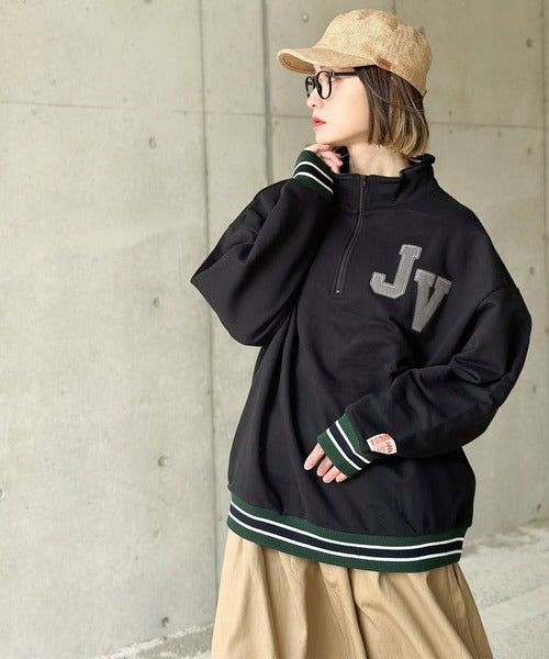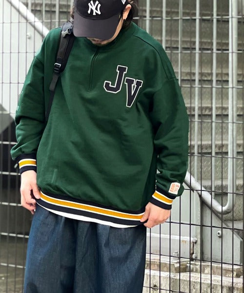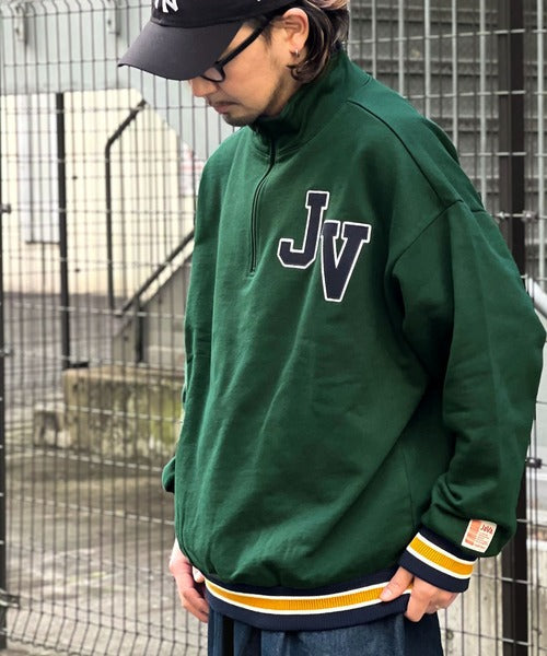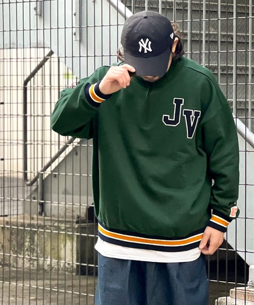 《JaVaジャバ コラボ》90’sヴィンテージ風。ワッペン付ラインリブハーフジッププルオーバー jv1029011