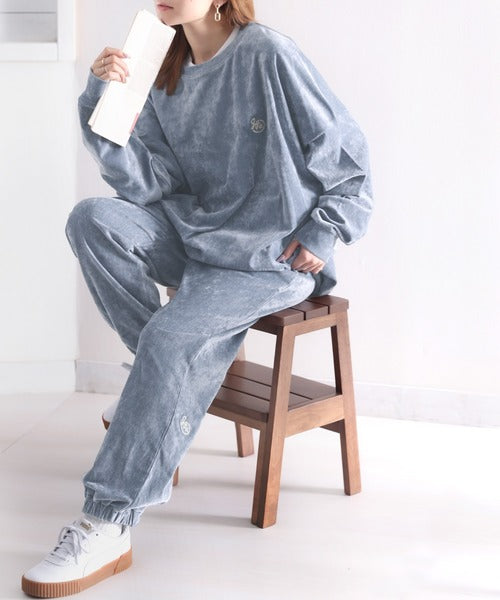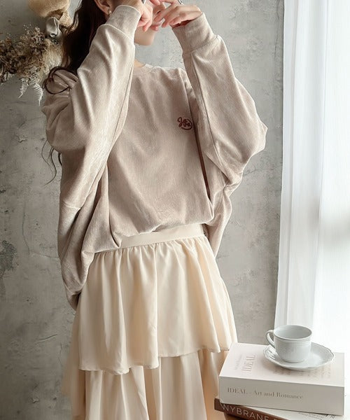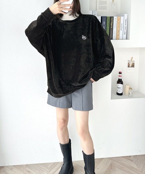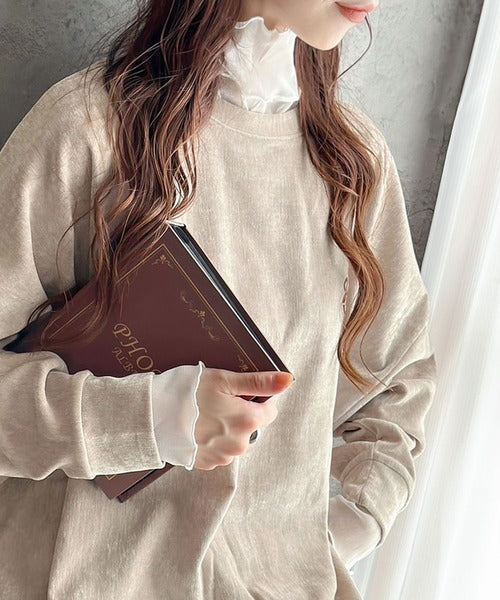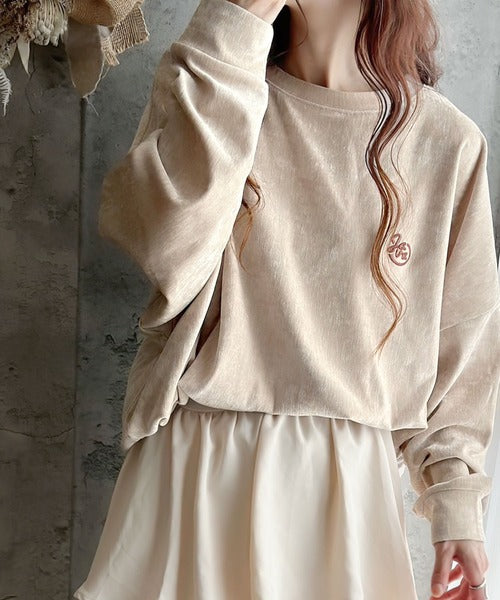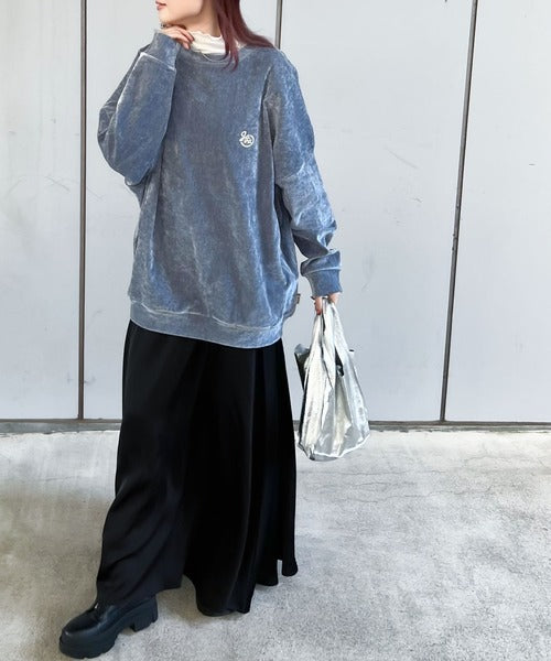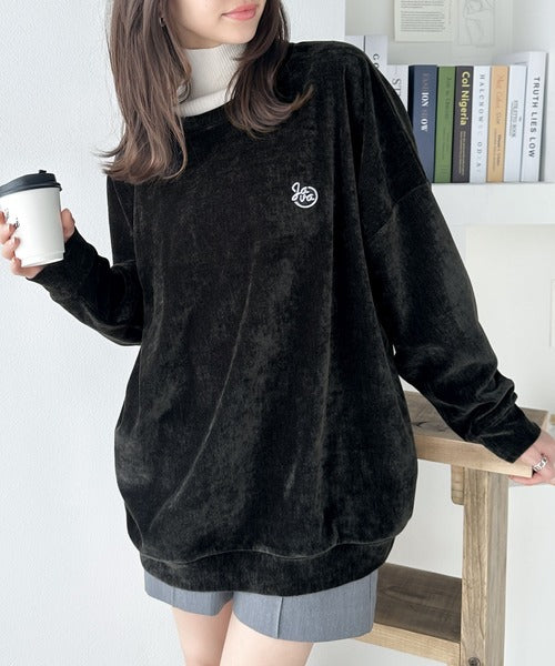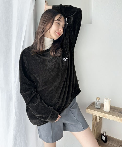 トレンドのベロア素材で上品かつカジュアルに仕上げたプルオーバー。