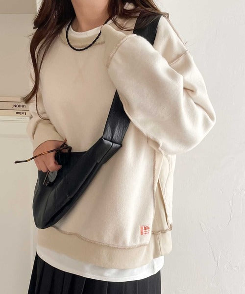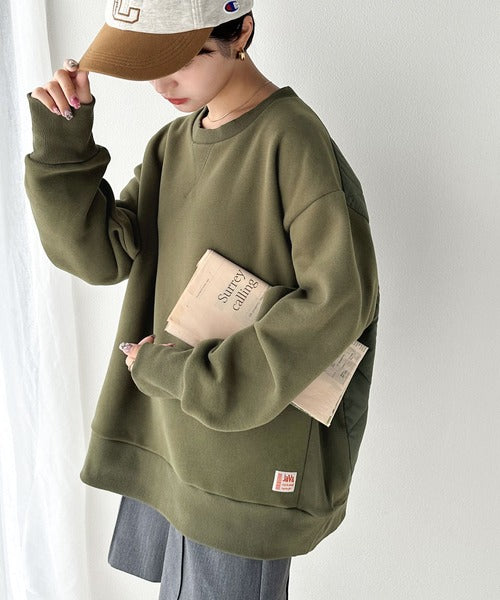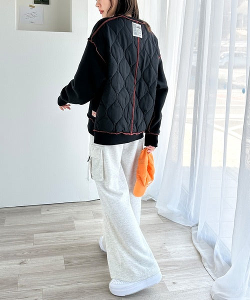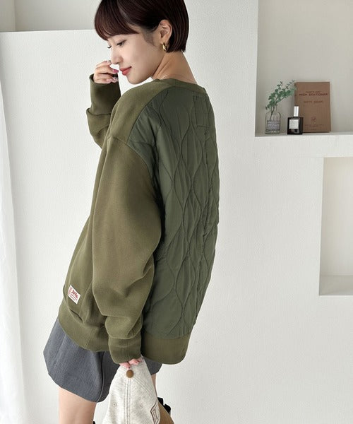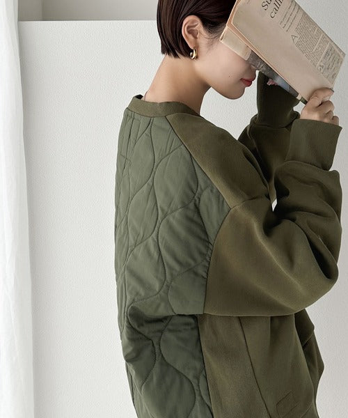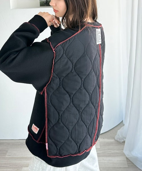 フロントはスウェット、バックは波キルティング切替の2wayリバーシブルプルオーバー。