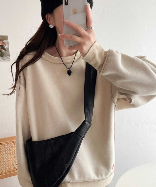 フロントはやわらかく肌触りのよいスウェット素材。バックはヴィンテージ感のあるキルティング素材。
