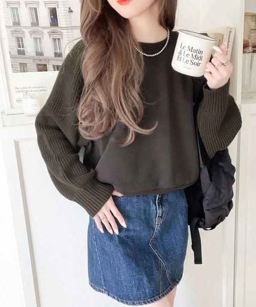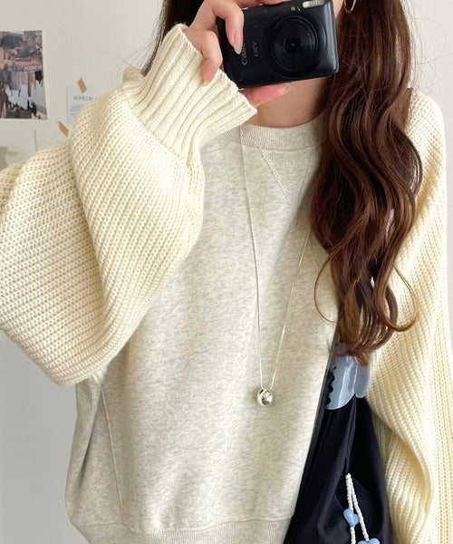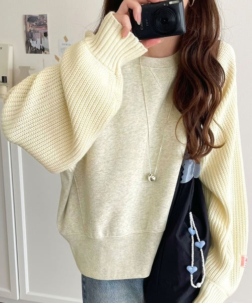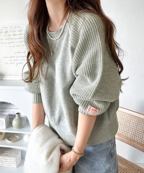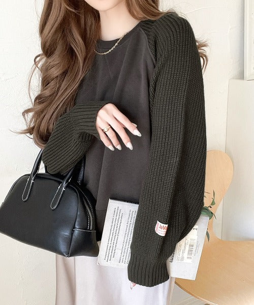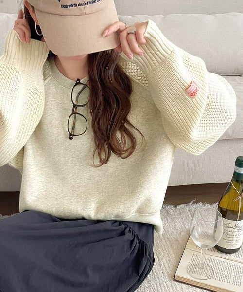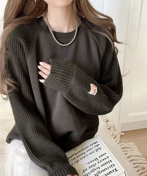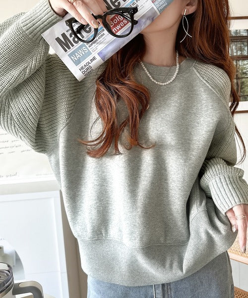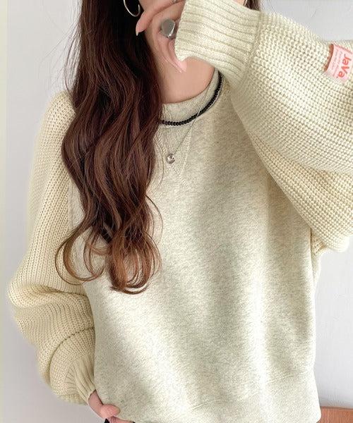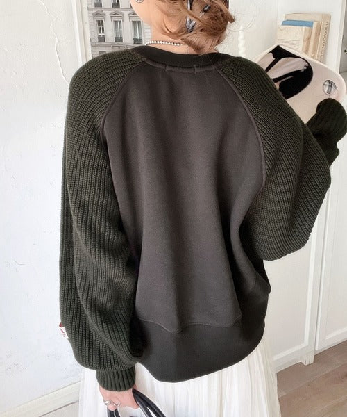 こなれ感のあるニットコンビの裏起毛スウェット。