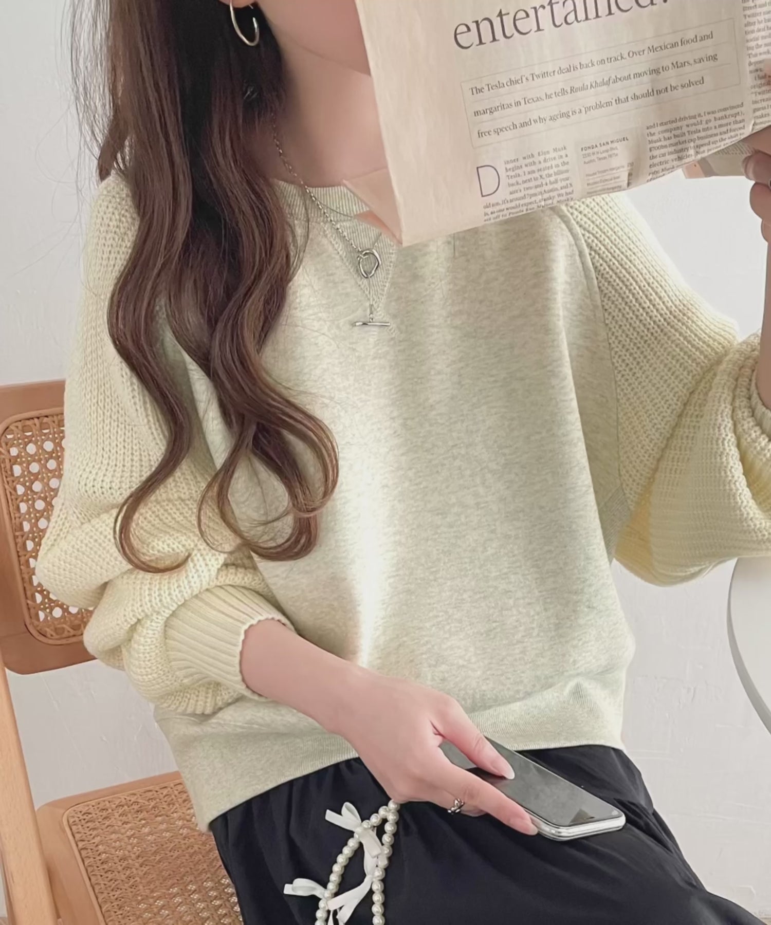 《Javaジャバコラボ》周りと差がつく。異素材切替え袖畦編み裏起毛プルオーバー jv1050227