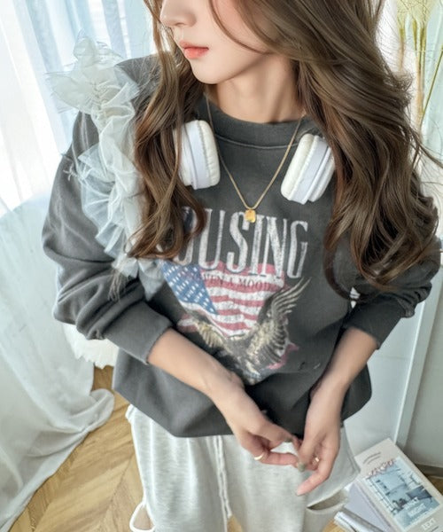 存在感のあるプリントスウェットプルオーバー。