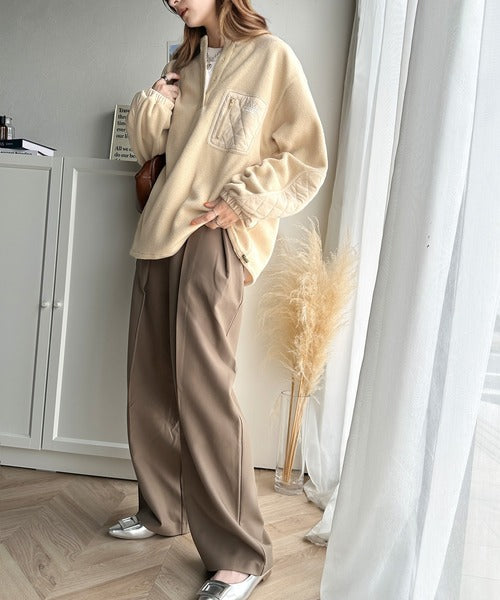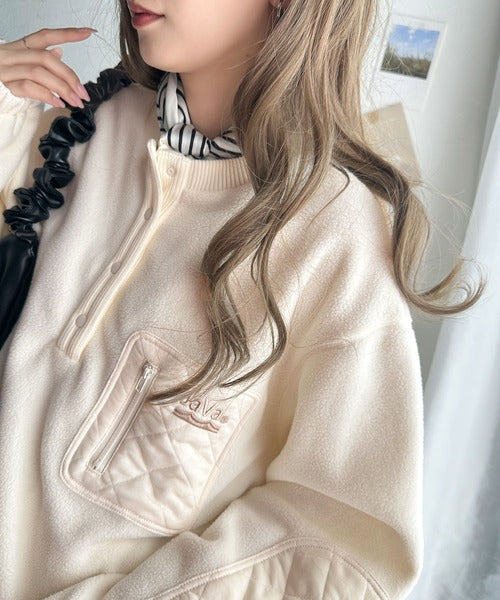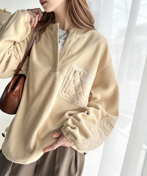 軽い着心地のフリース素材にキルトの異素材配色がアクセントになったプルオーバー。