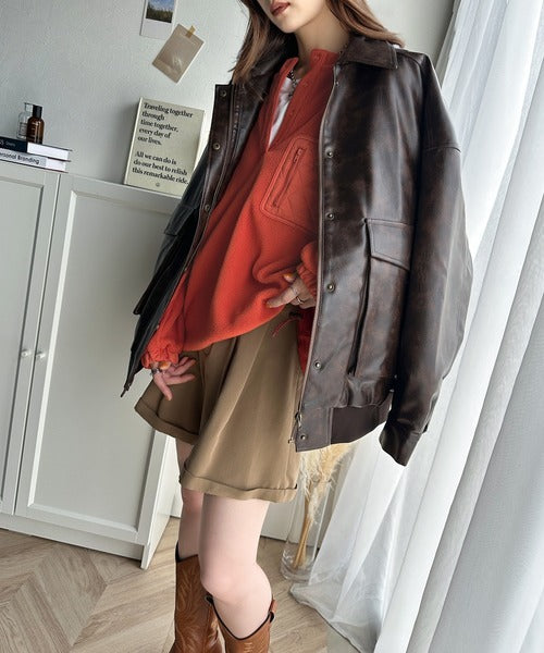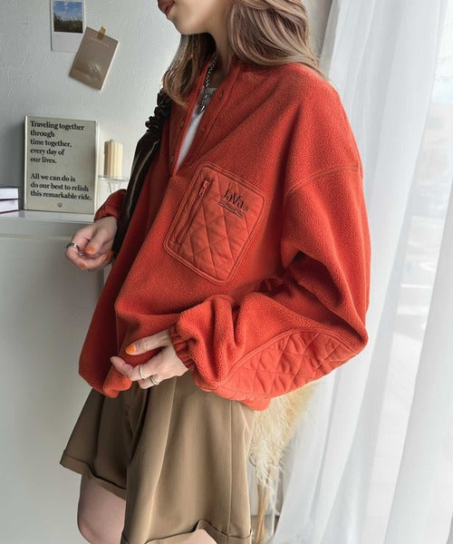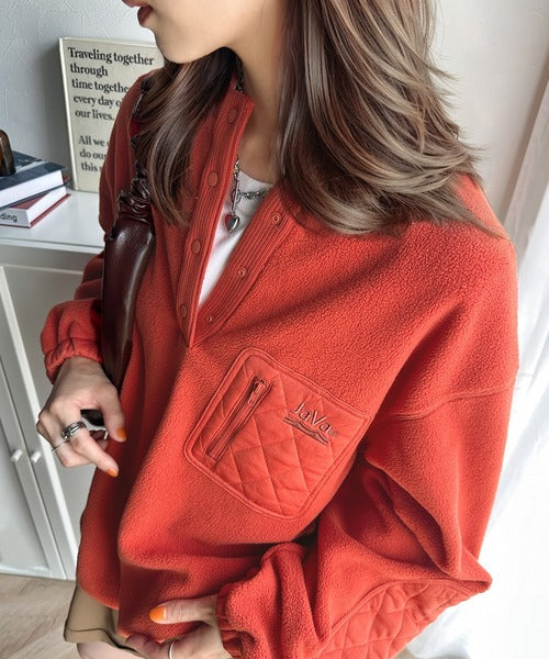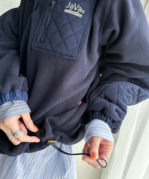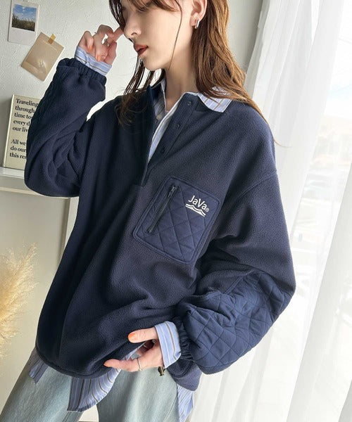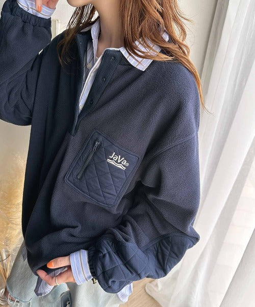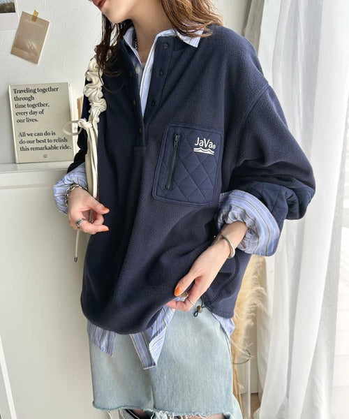 《Javaジャバコラボ》コーデが一気にサマ見え。胸ポケット×キルトヘンリーフリースプルオーバー jv1110084