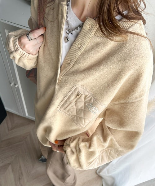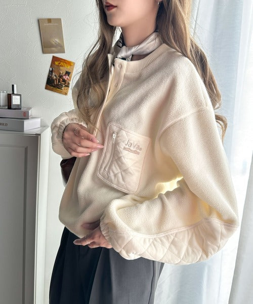 柔らかいフリース素材とキルトの異素材組み合わせで、ワンランク上がるitemに仕上げました。