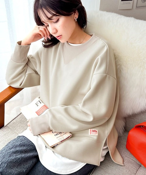 《JaVaジャバ コラボ》滑らか&艶やか。ネックデザインダンボールニットプルオーバー jv1160006
