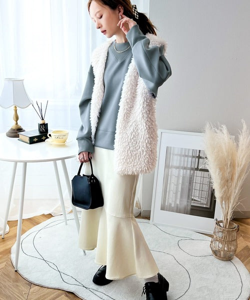 マーメイドスカートやタイトスカートなど女性らしいボトムスと合わせても◎