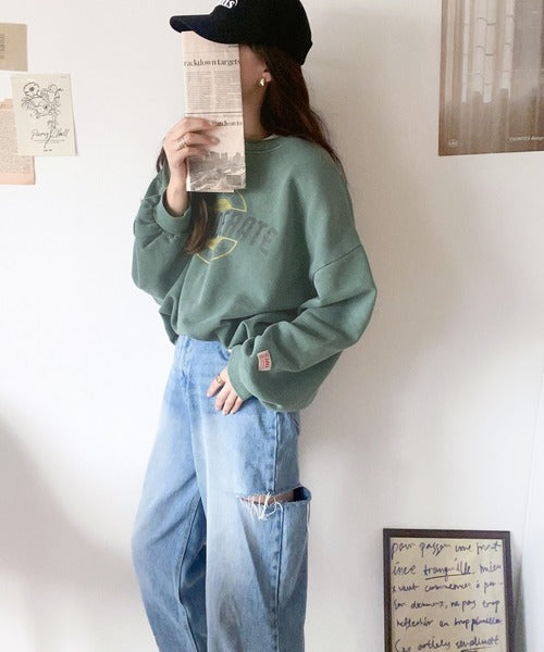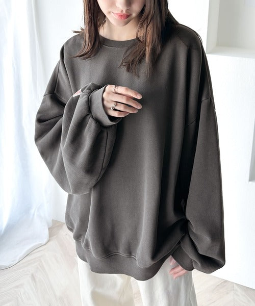 メンズライクなオーバーサイズに仕上げたスエットプルオーバー。