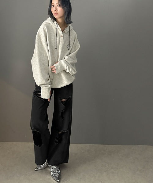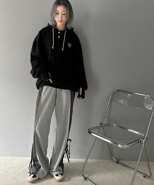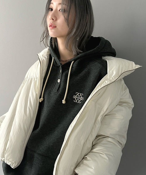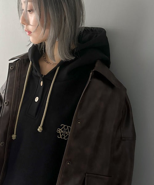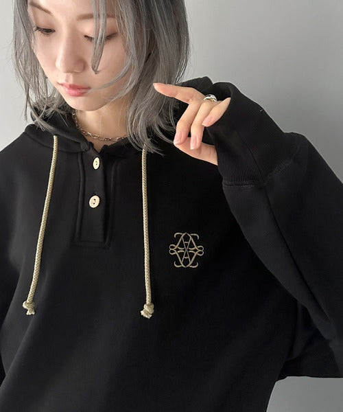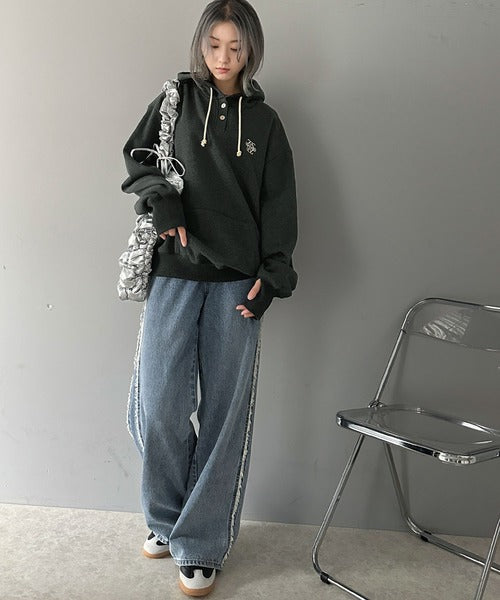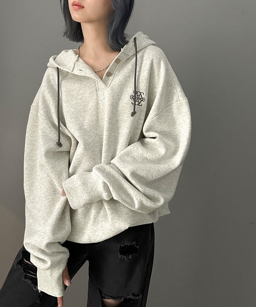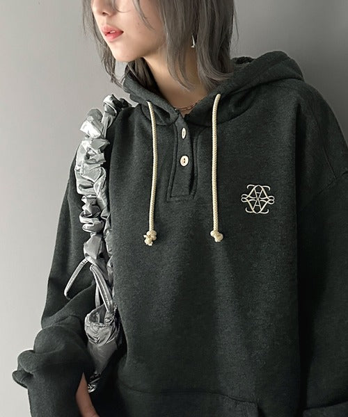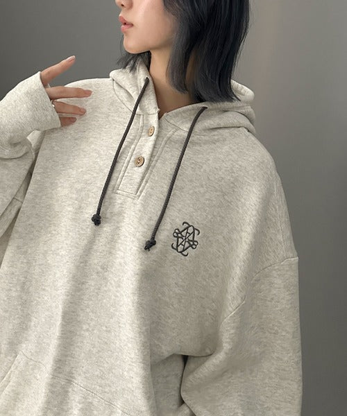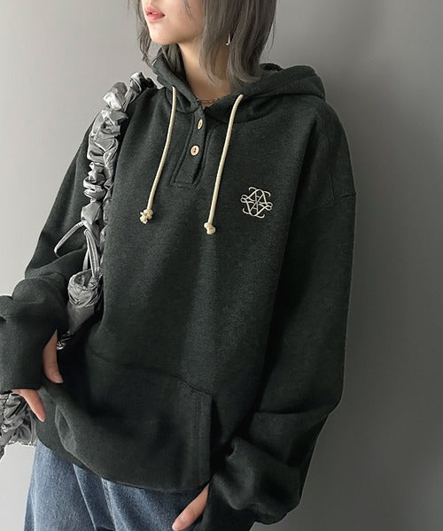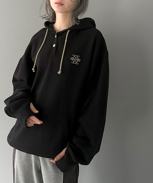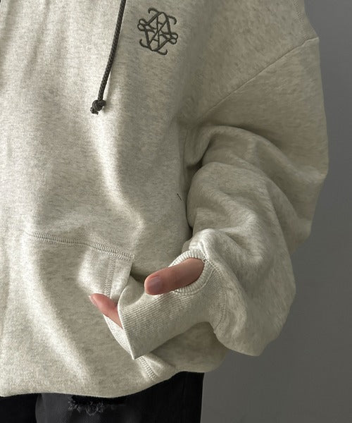 《Javaジャバコラボ》抜け感も叶える大人カジュアル。胸刺繍Bigヘンリー裏起毛指穴パーカー jv1329009