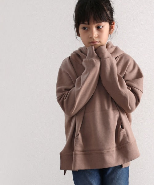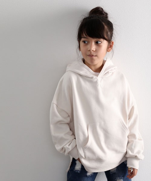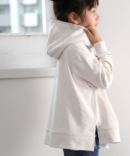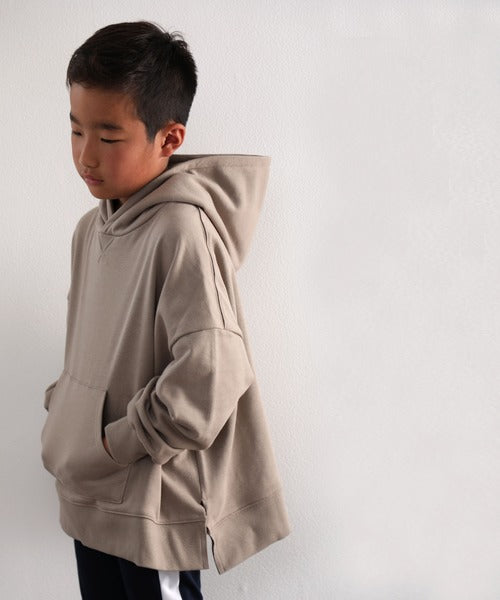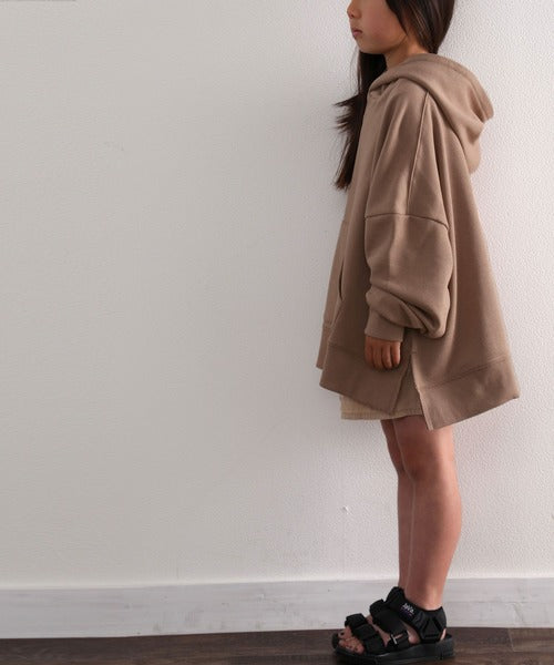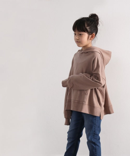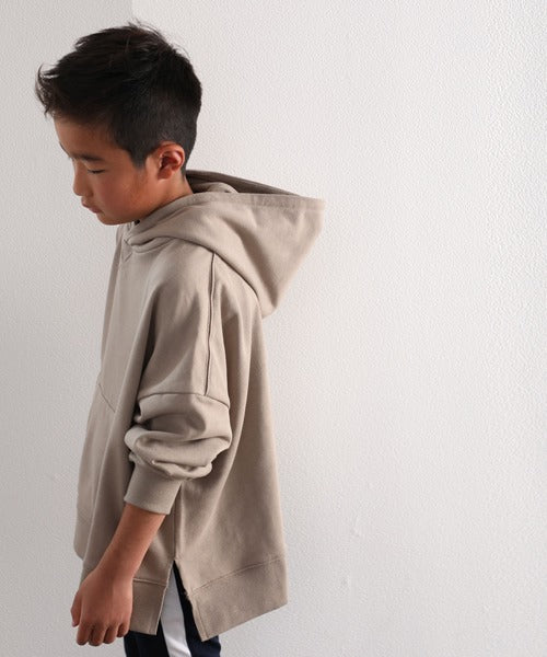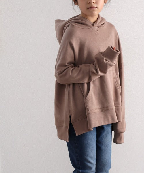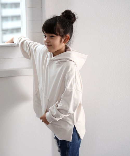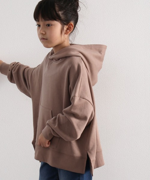 【family+】【親子おそろい】キッズ サイドスリット無地ワイドプルオーバーパーカー(長袖) kcl5001