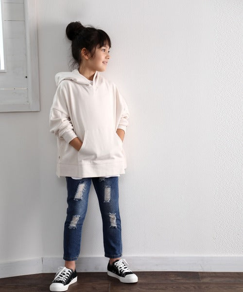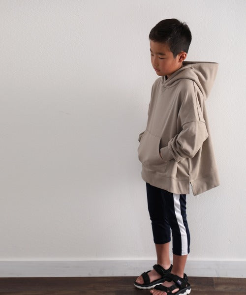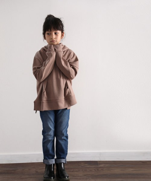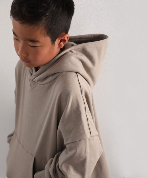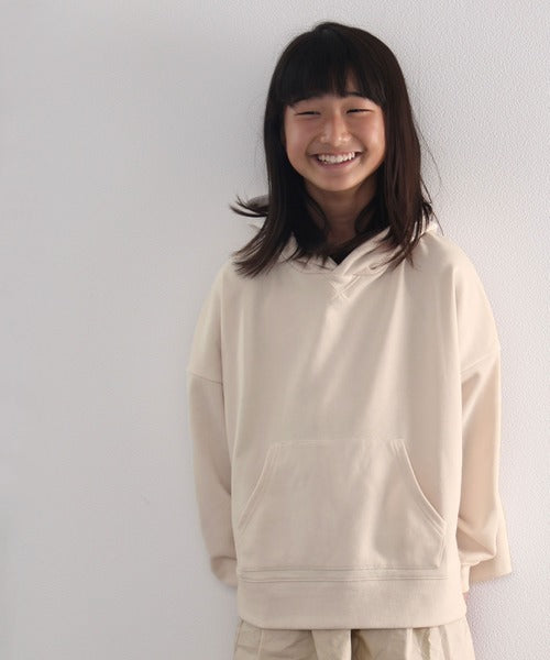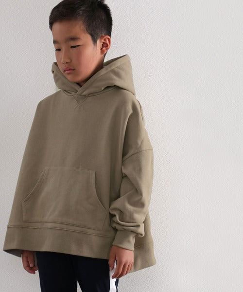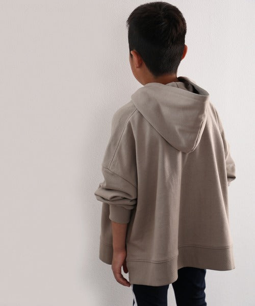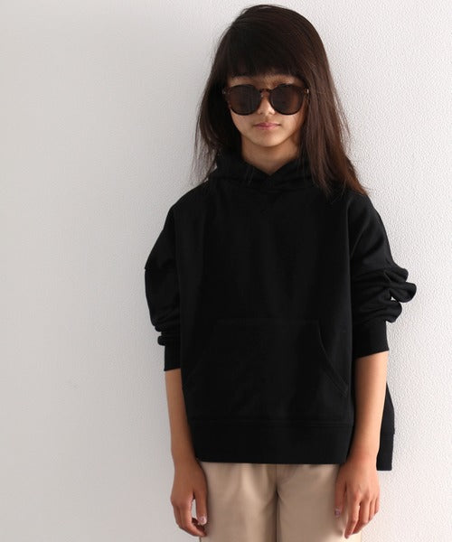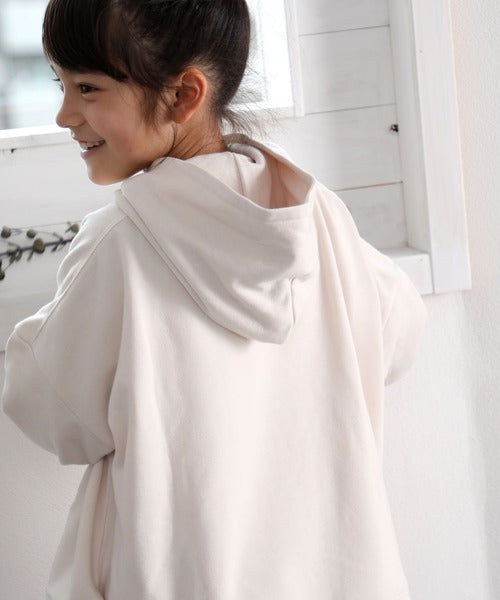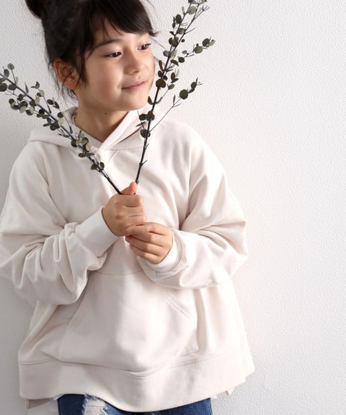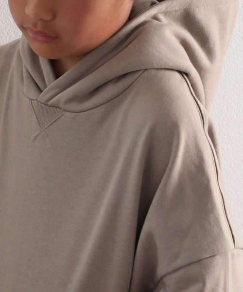 【family+】【親子おそろい】キッズ サイドスリット無地ワイドプルオーバーパーカー(長袖) kcl5001