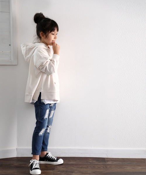 ★キッズ サイドスリット無地ワイドプルオーバーパーカー(長袖)★