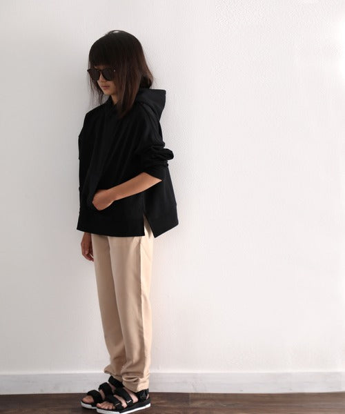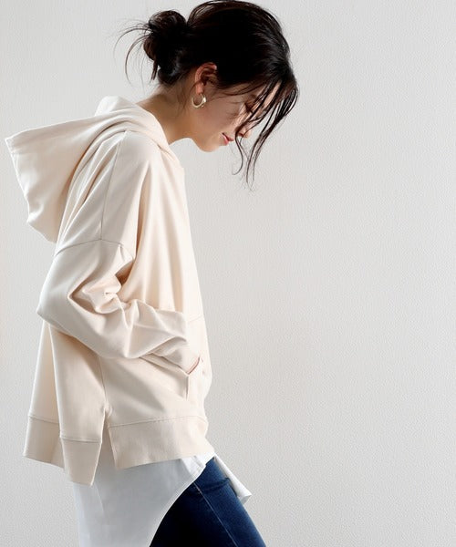 両サイドにスリットが入ったワイドパーカートレーナー。