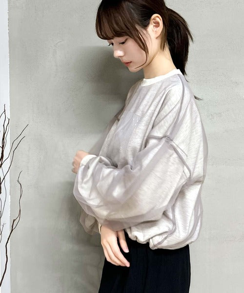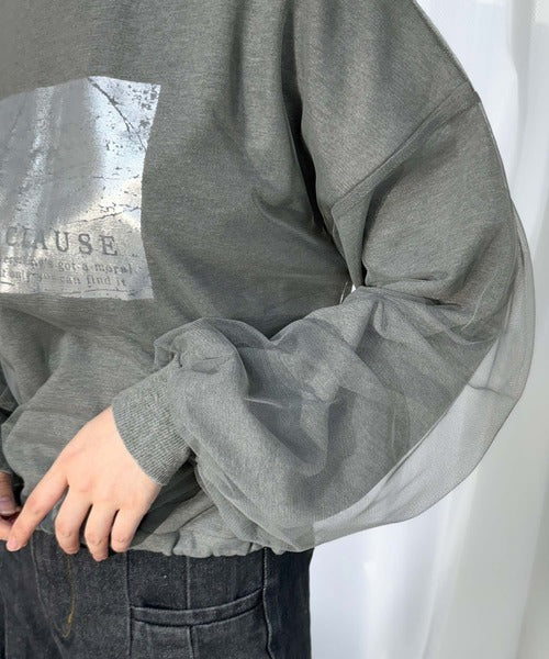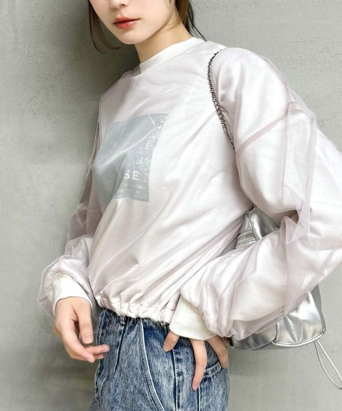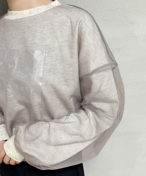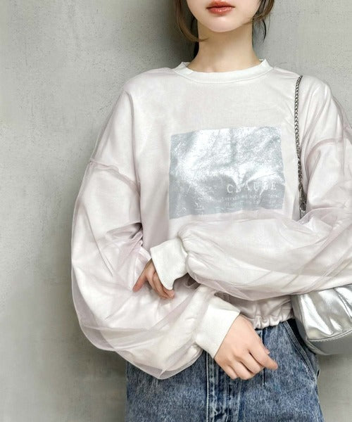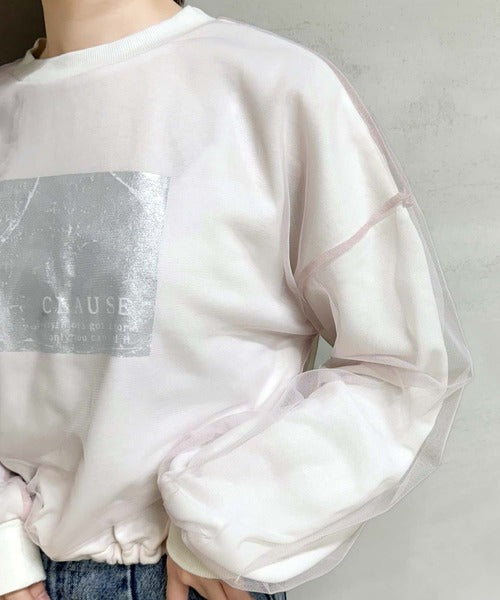 秋冬でもシアー感を楽しめるチュール重ねのスウェット。