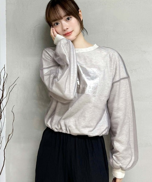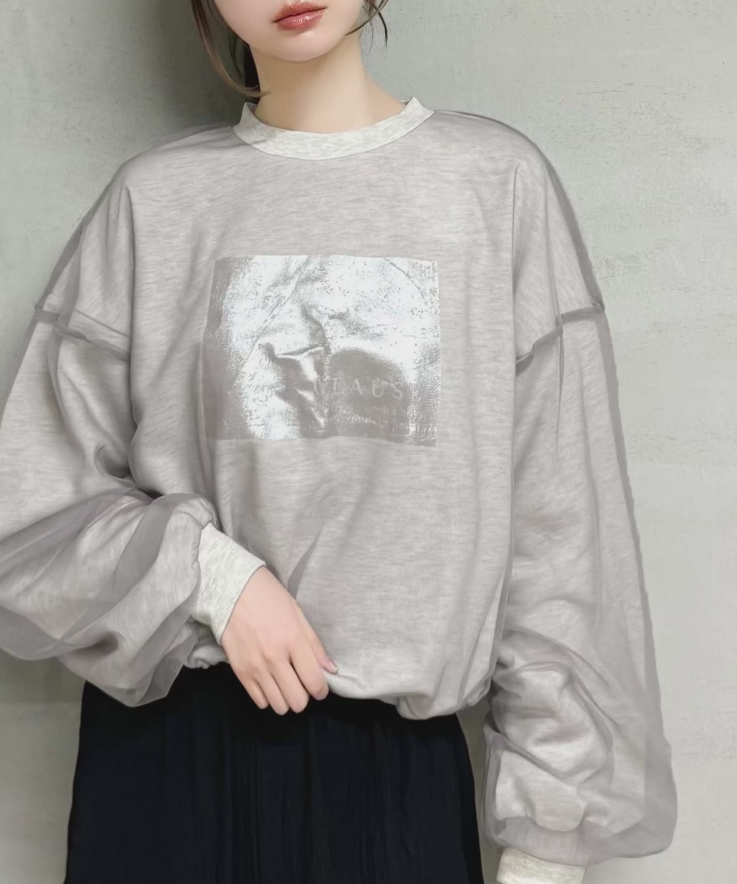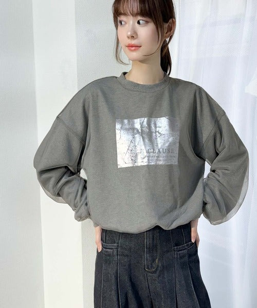 【mily bilet】秋冬に楽しむチュール素材。箔プリントチュール重ねスピンドルスウェット mi1019057
