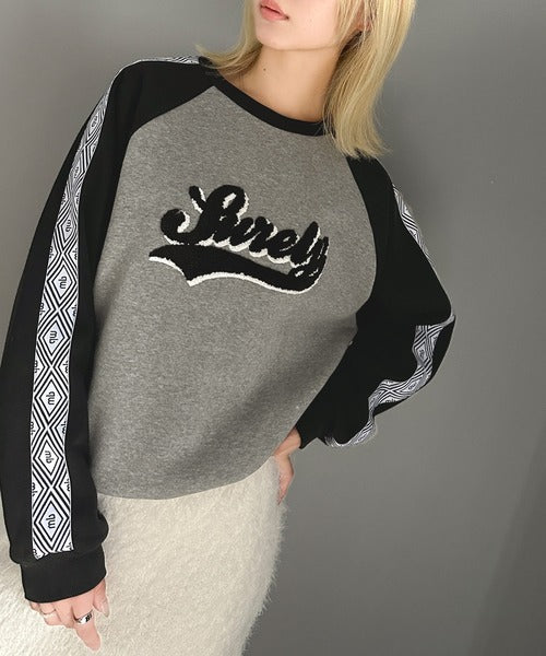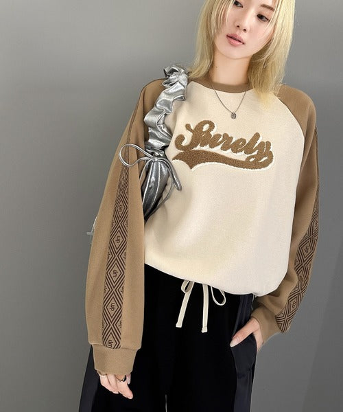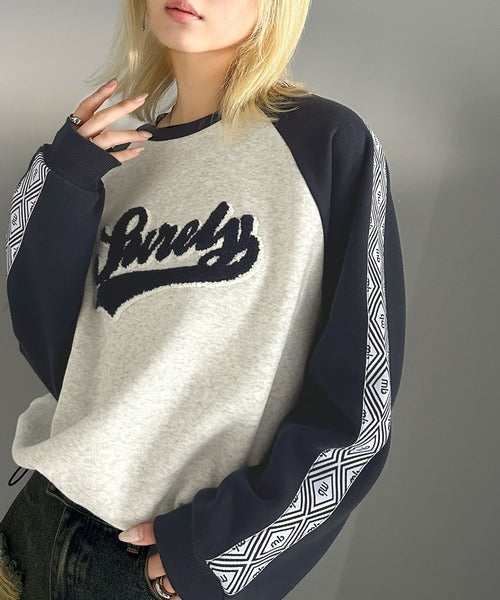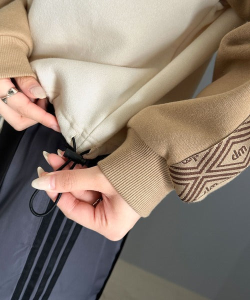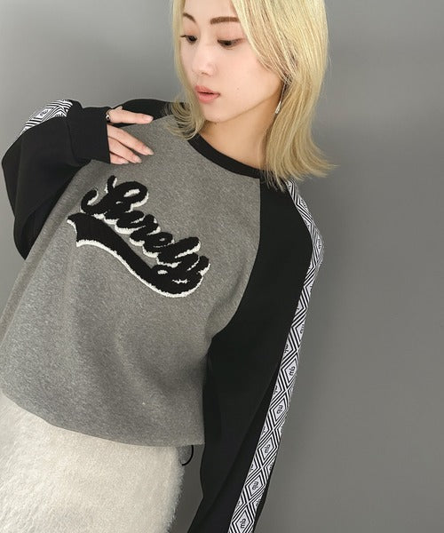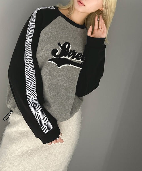 袖のジャガードテープが個性的で可愛いスウェットプルオーバー。