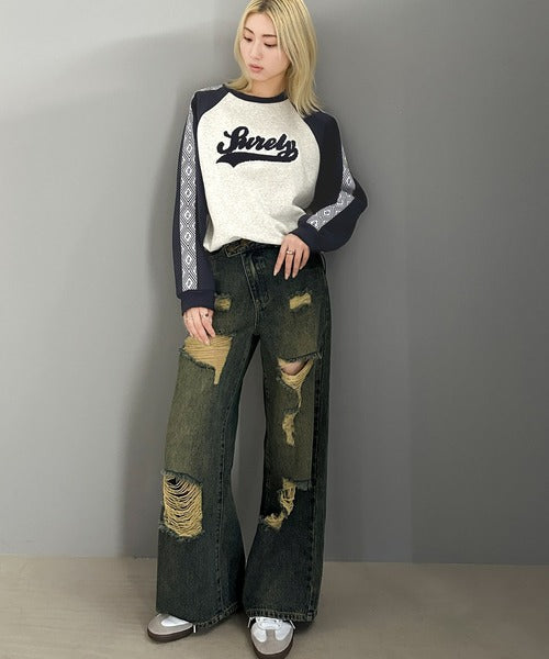 フロントのサガラ刺繍がトレンドライクな裏毛スウェット。