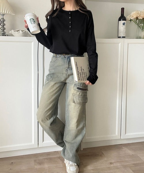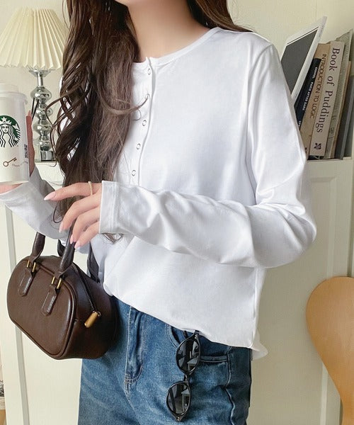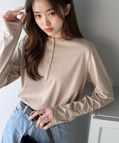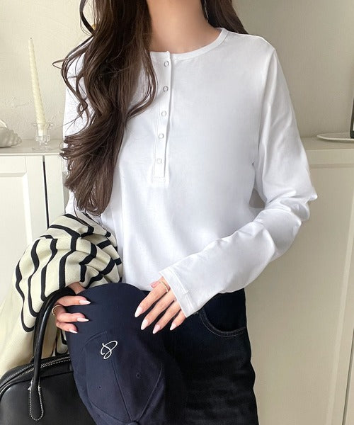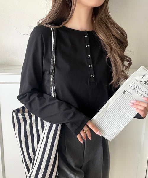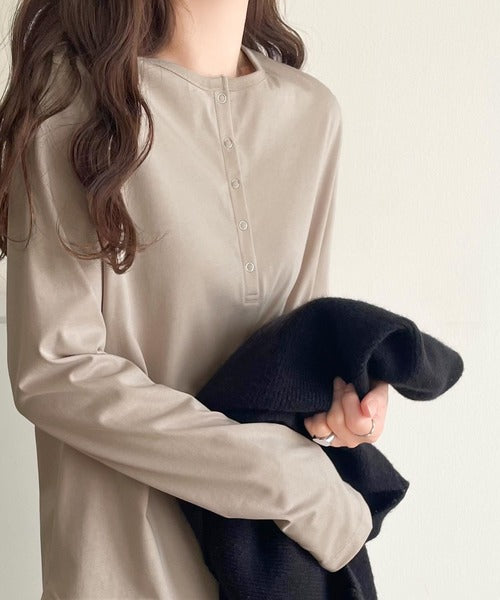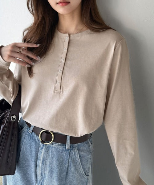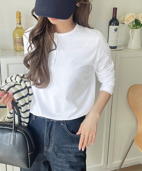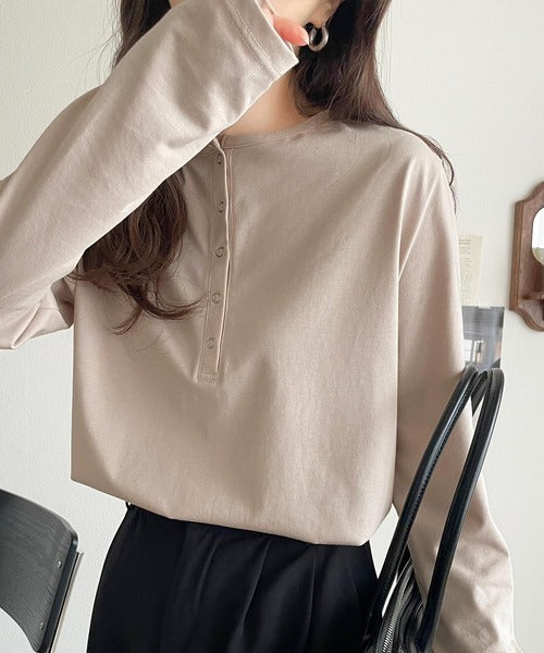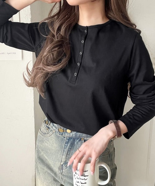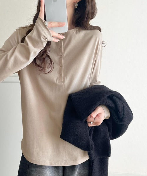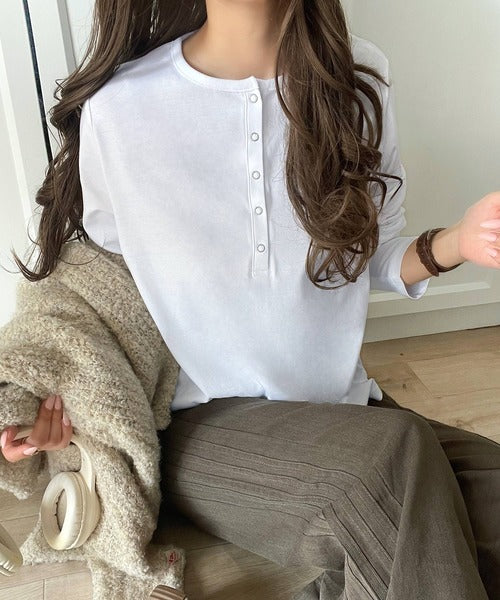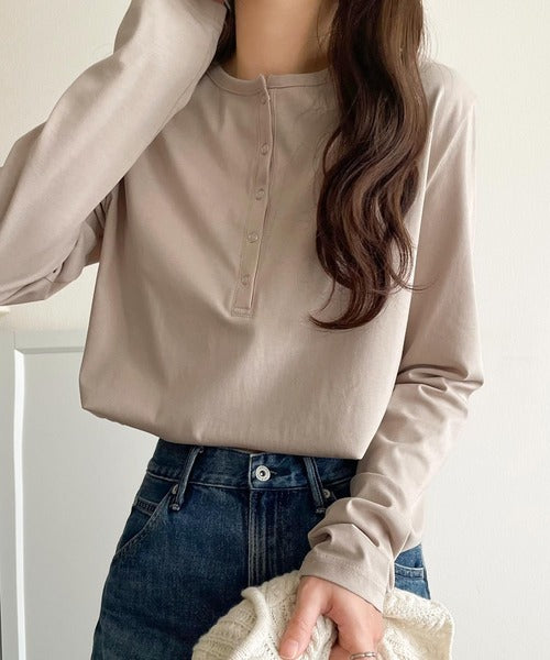 シンプルだからこそ、こだわりたい。シルケット加工ドット釦ヘンリーTシャツ(長袖) ce1020314