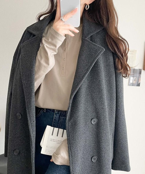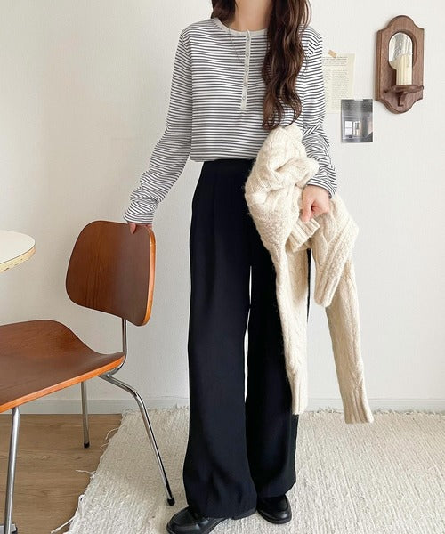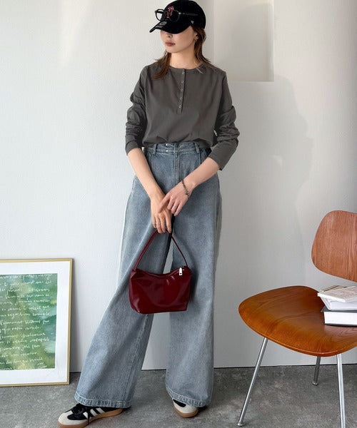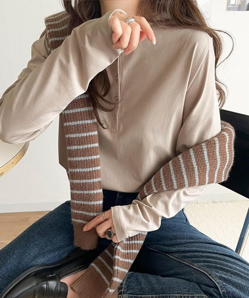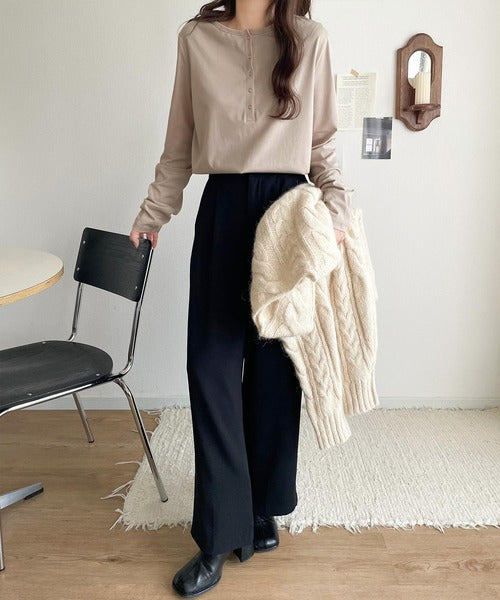 ・首元すっきりのヘンリーネックデザイン