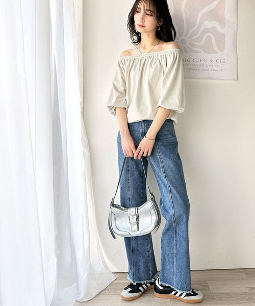 程よい肌見せが叶うデザインで、大人の抜け感スタイルを演出◎