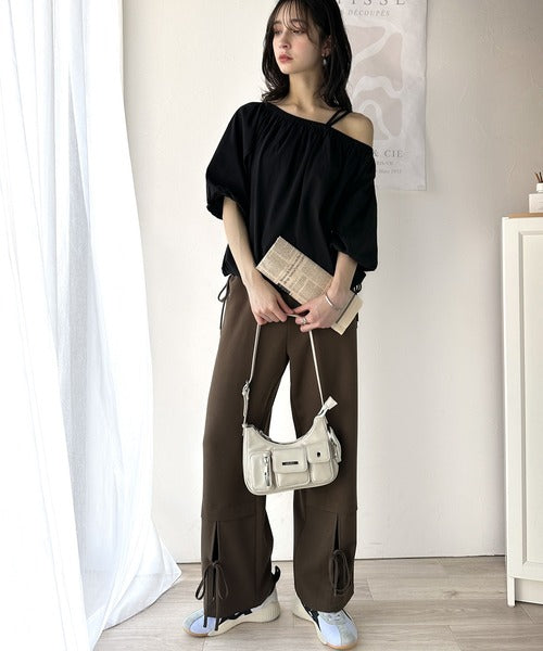 肩のストラップも結び方次第で、気分に合わせたアレンジが楽しめる♪