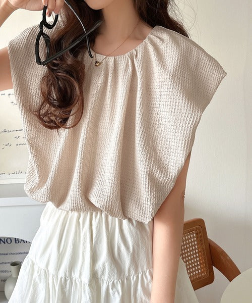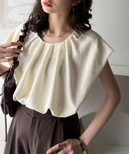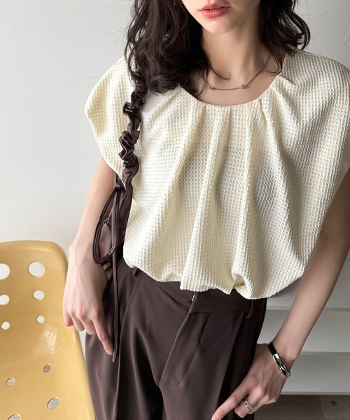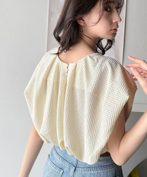 タックデザイン×バルーンシルエットの立体感が魅力のデザインブラウス。