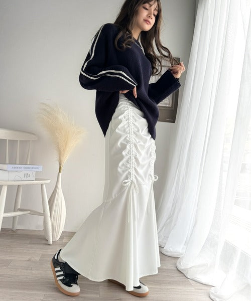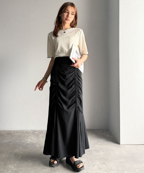 大人可愛い!愛され美ライン。シャーリングリボン使いマーメイドスカート(ロング丈) ce0940215