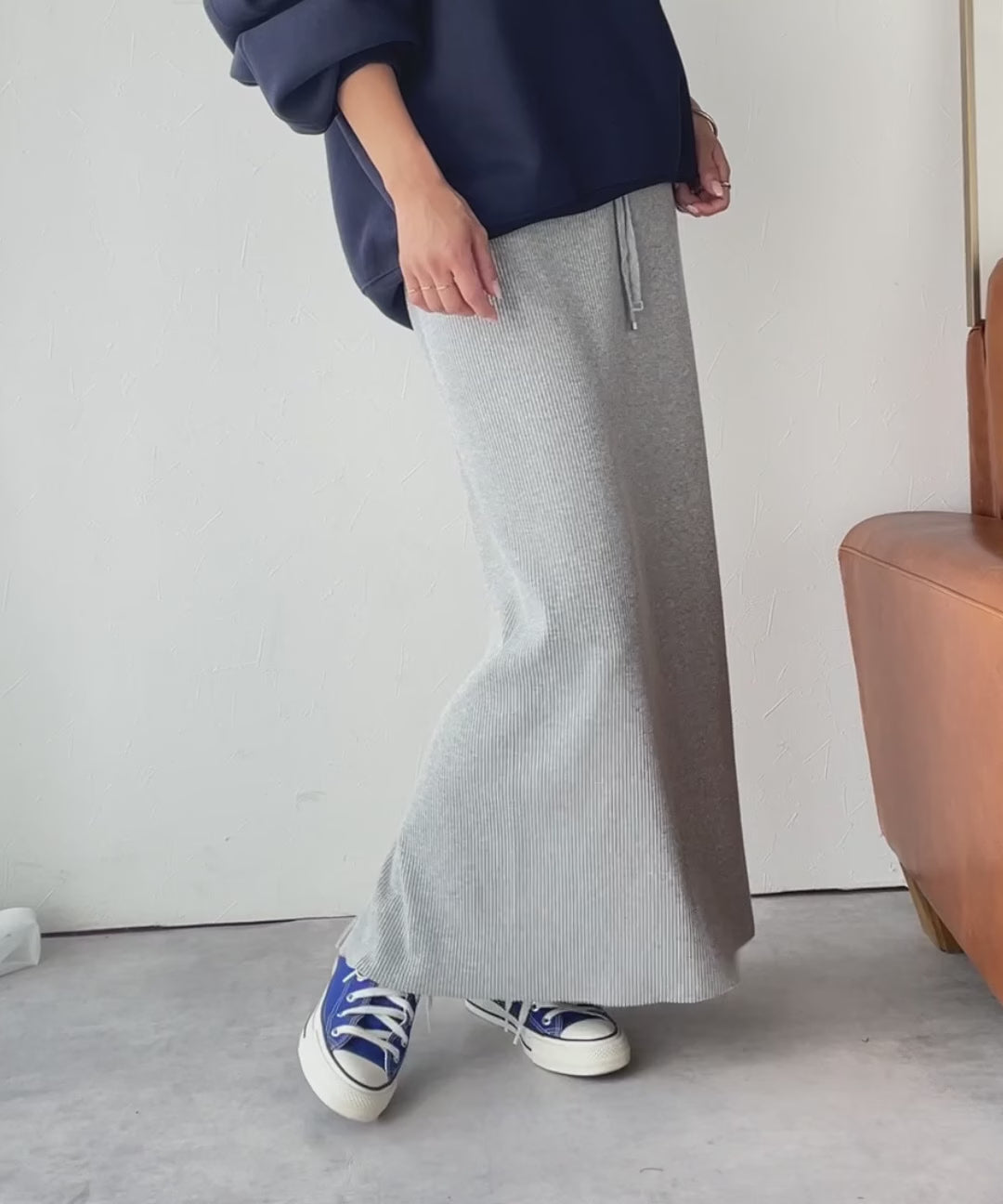 ストンと落ち感のあるロング丈が魅力のリブスカート。