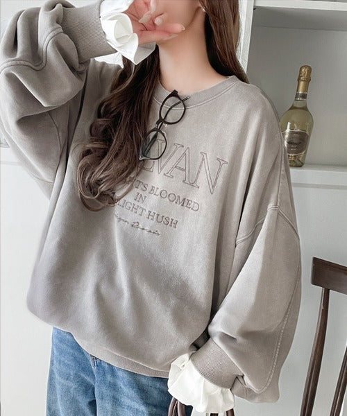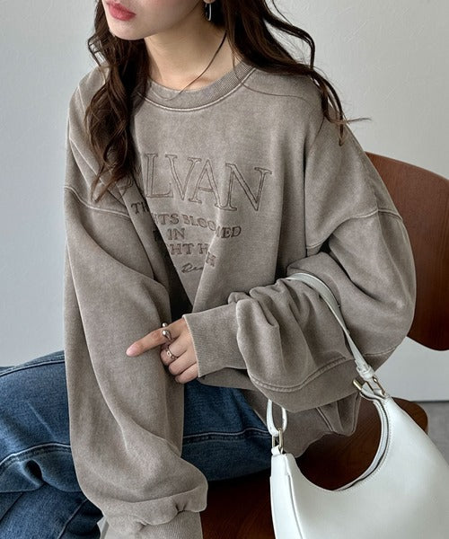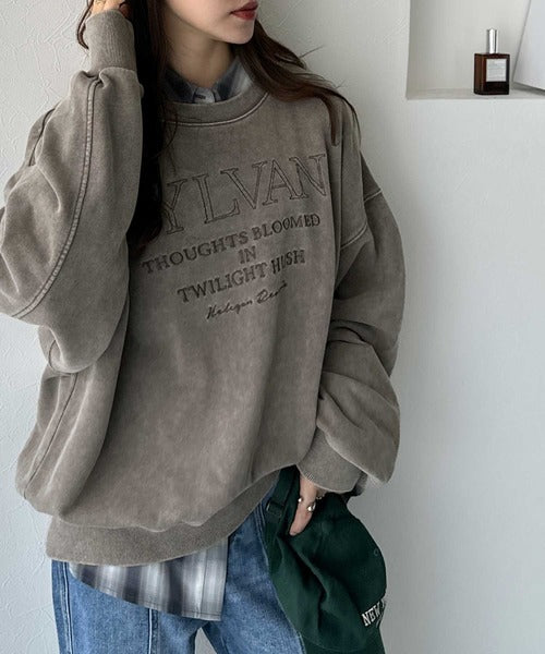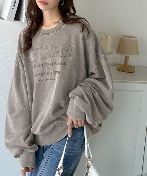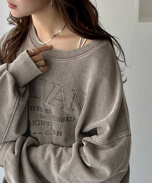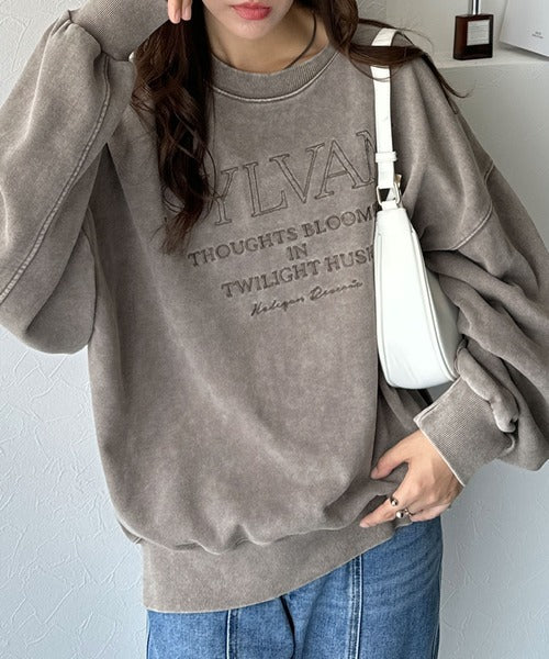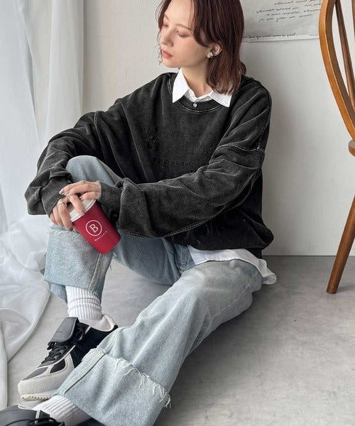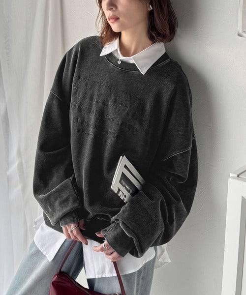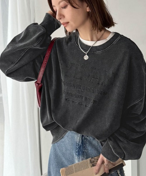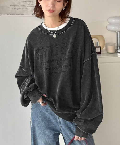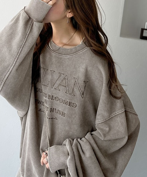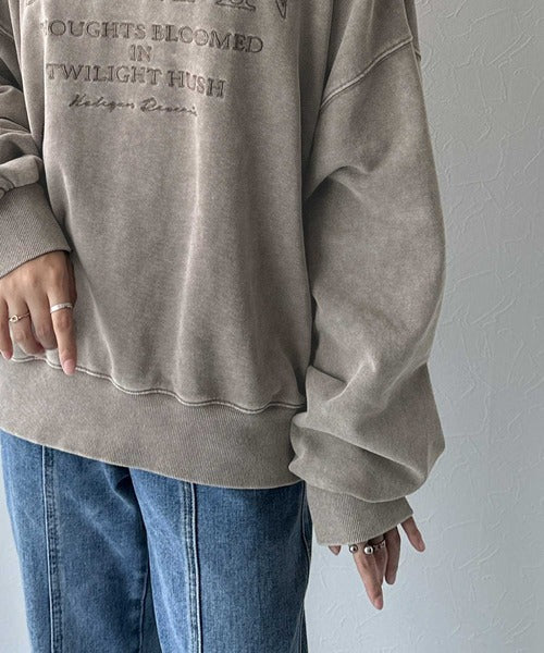レトロデザインに釘付け!ピグメント加工刺繍ロゴ裏毛オーバーサイズプルオーバー(長袖) ce1260509