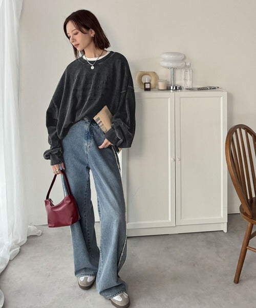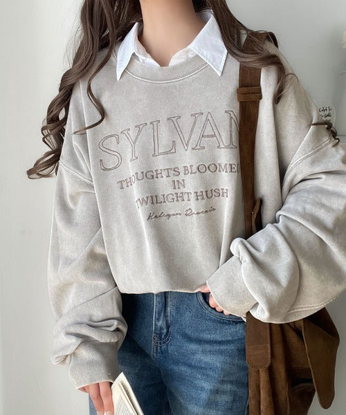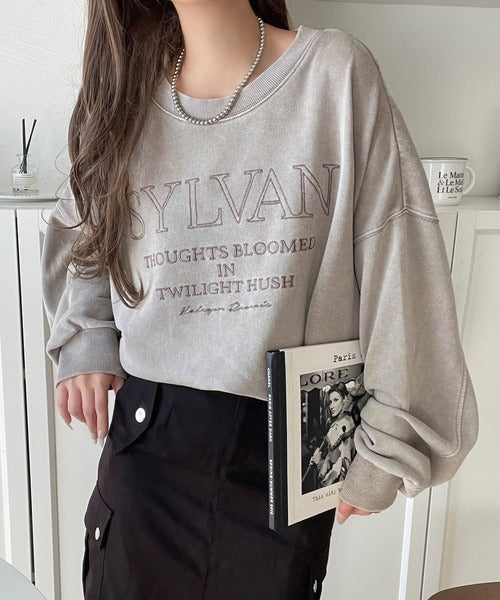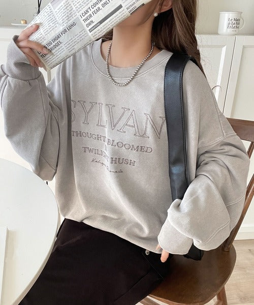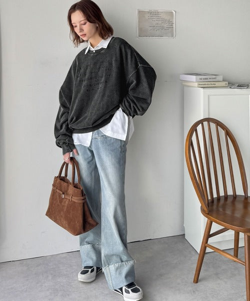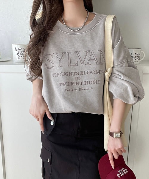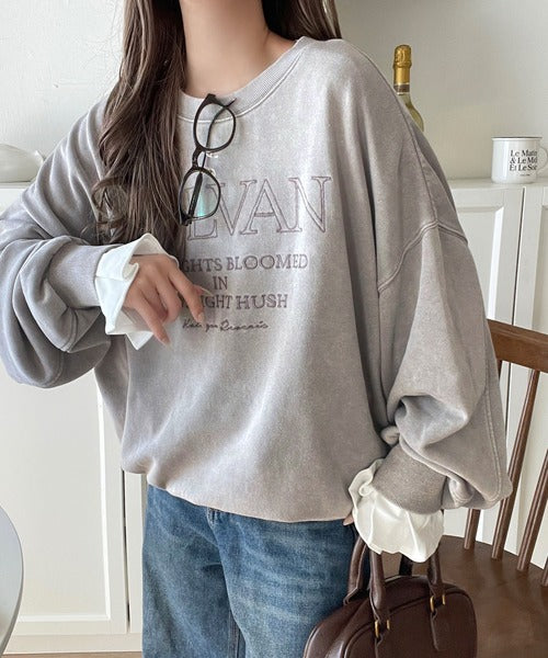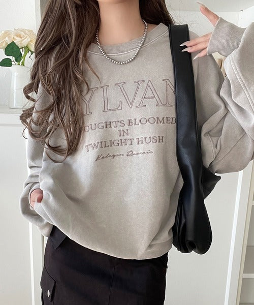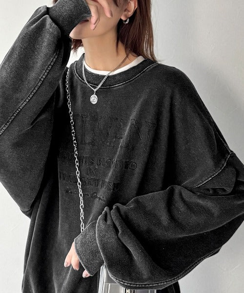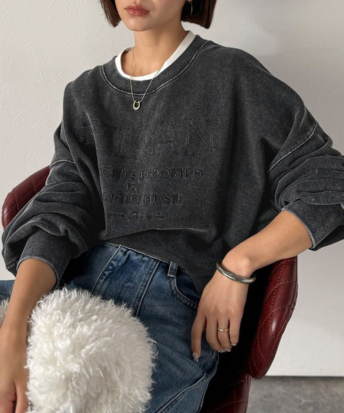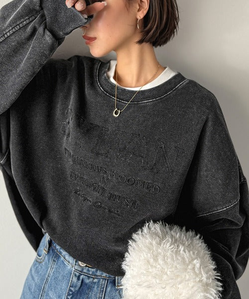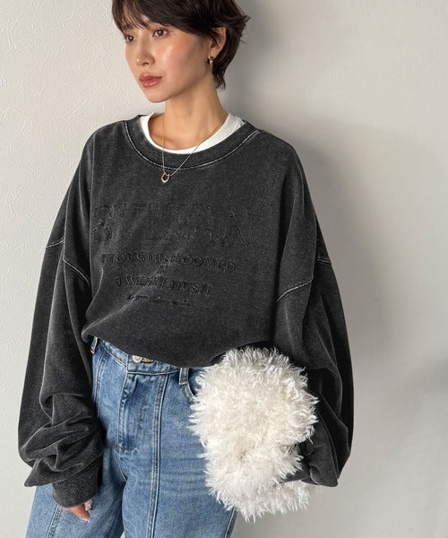 レトロデザインに釘付け!ピグメント加工刺繍ロゴ裏毛オーバーサイズプルオーバー(長袖) ce1260509