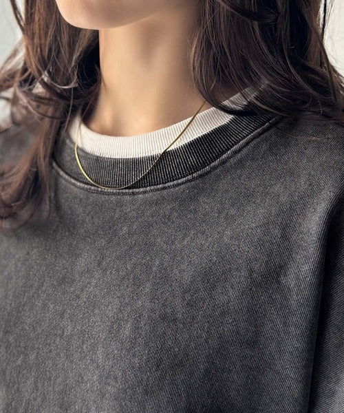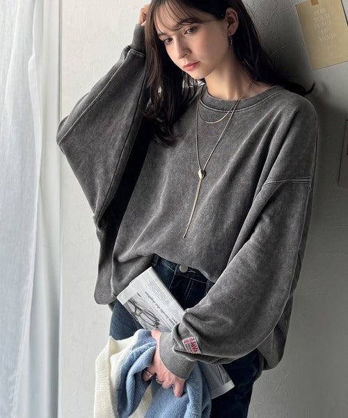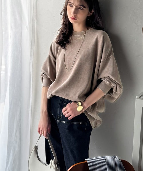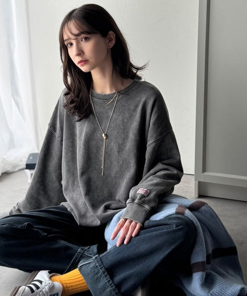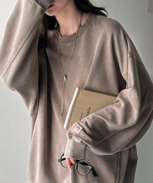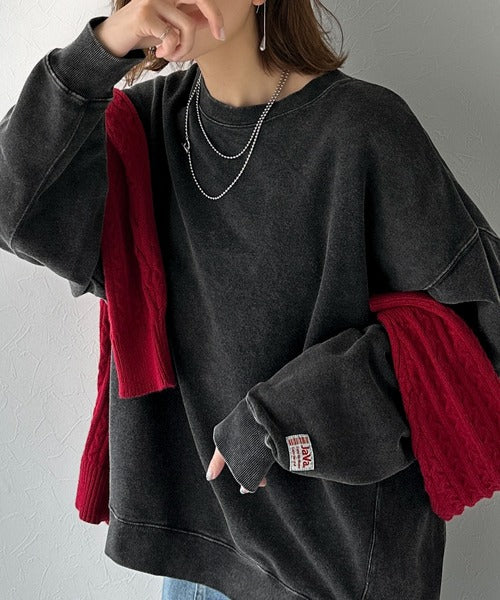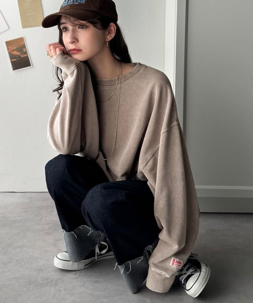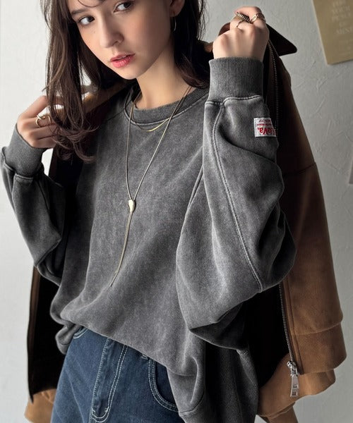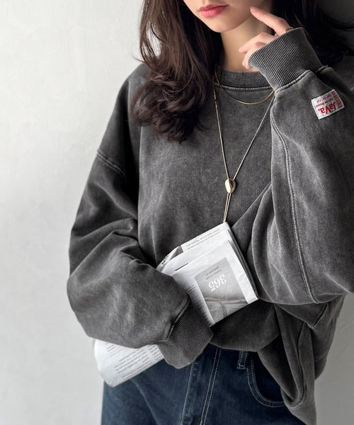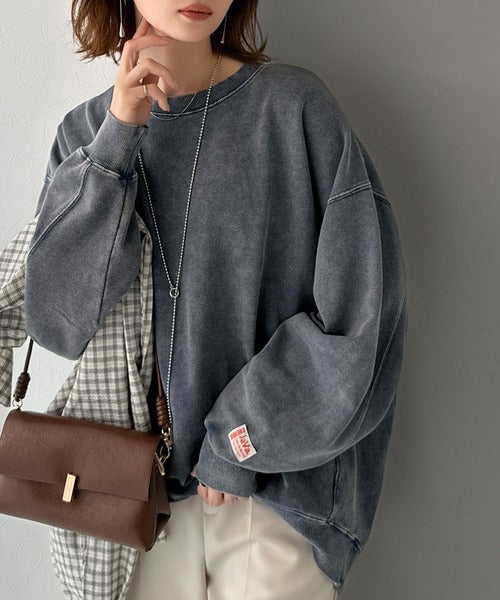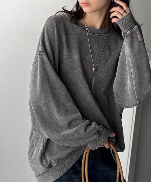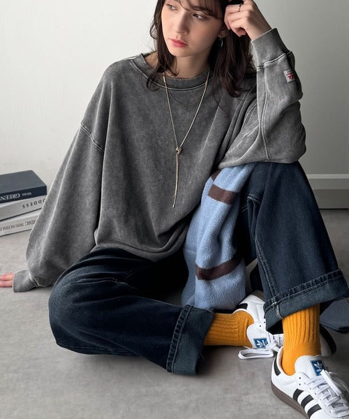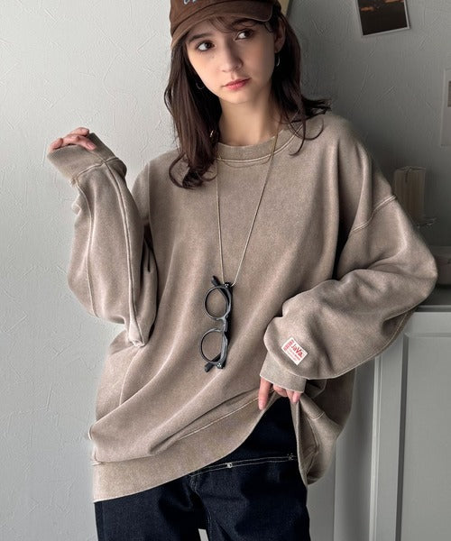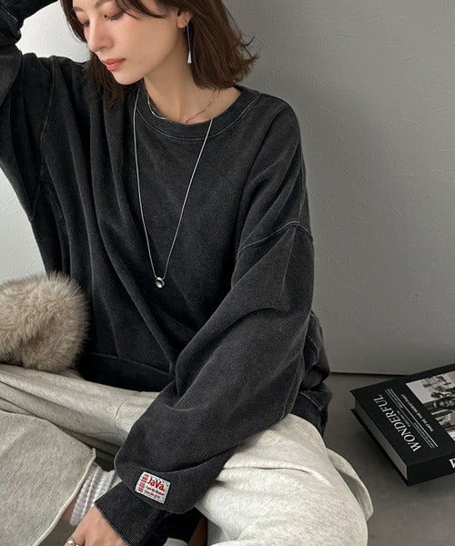 《JaVaジャバコラボ》古着風のこなれ感。アシッドウォッシュ綿混裏毛オーバーサイズスウェット(長袖) jv1260520