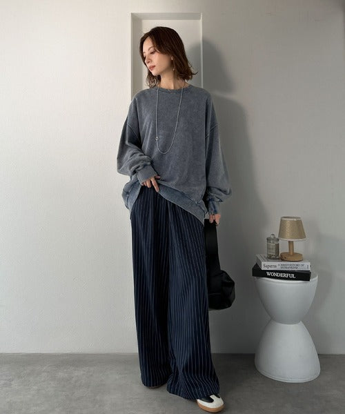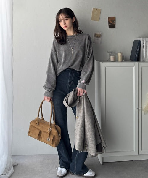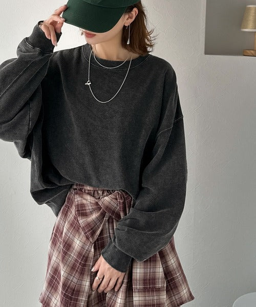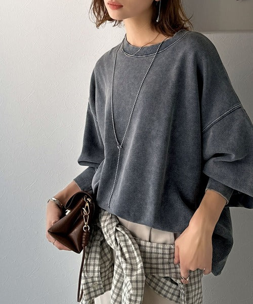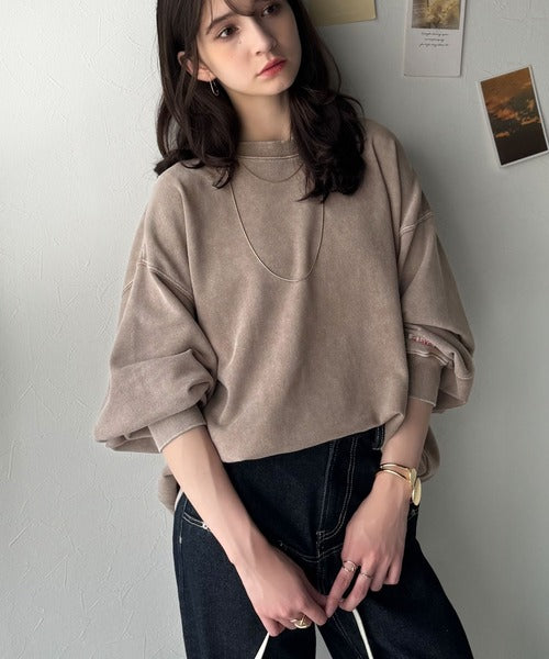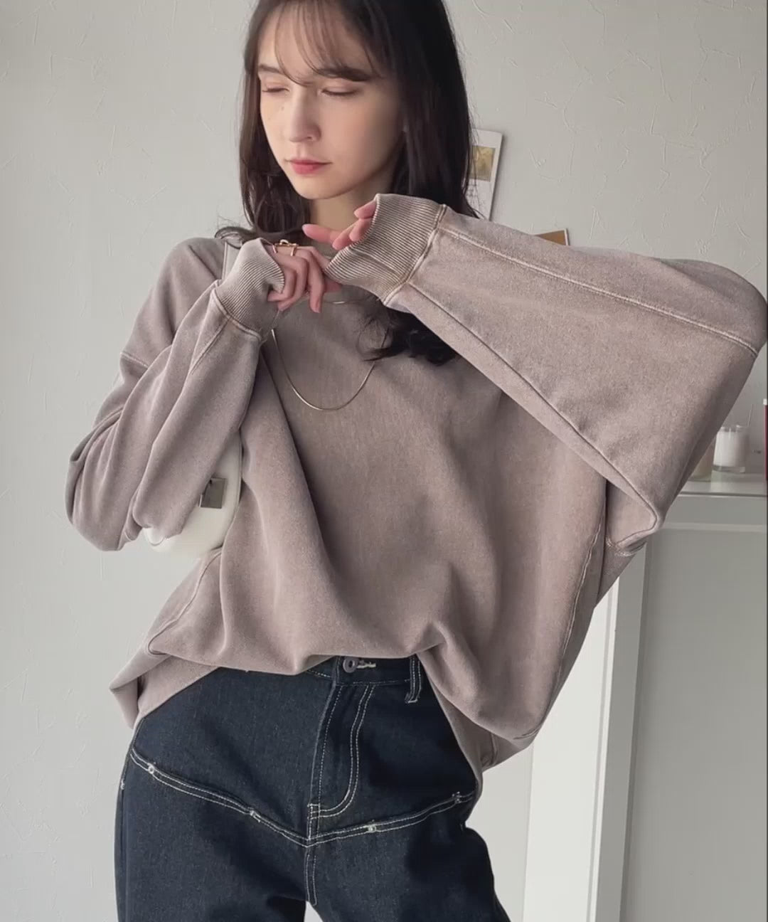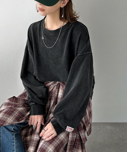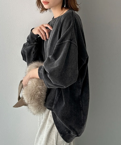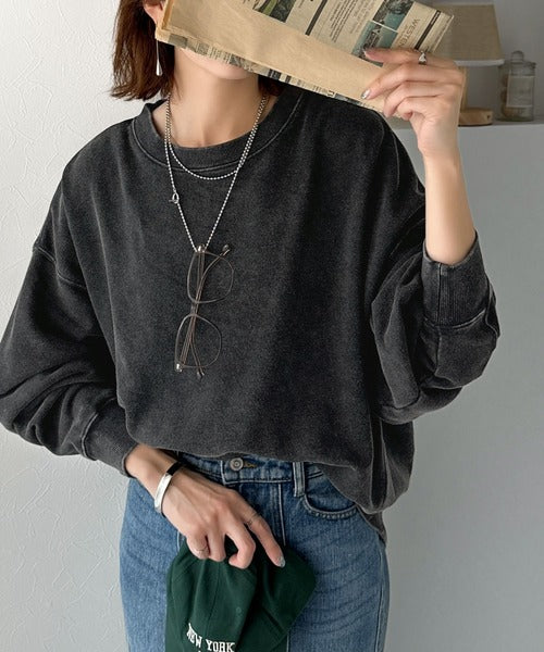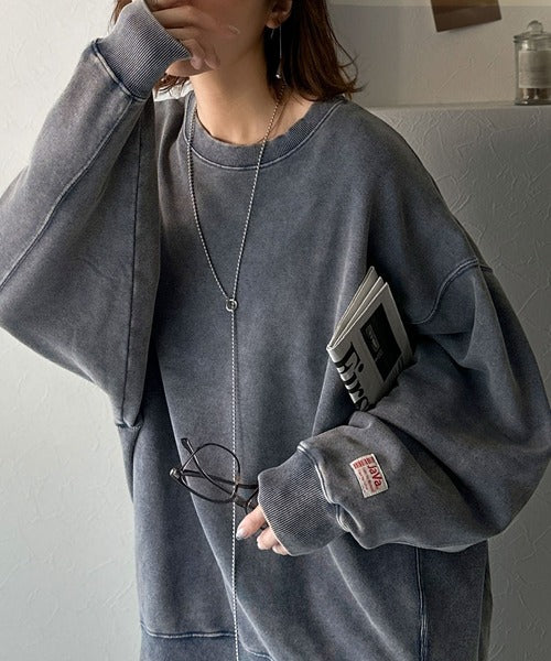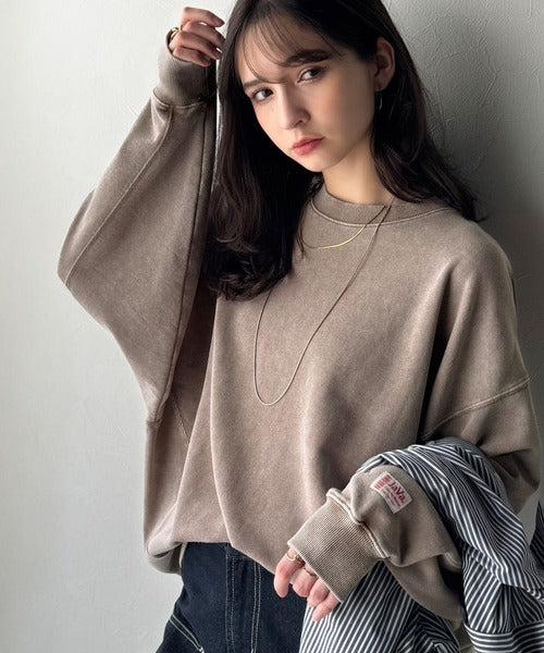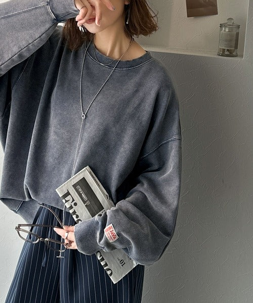 《JaVaジャバコラボ》古着風のこなれ感。アシッドウォッシュ綿混裏毛オーバーサイズスウェット(長袖) jv1260520