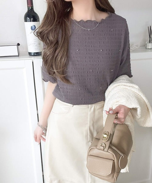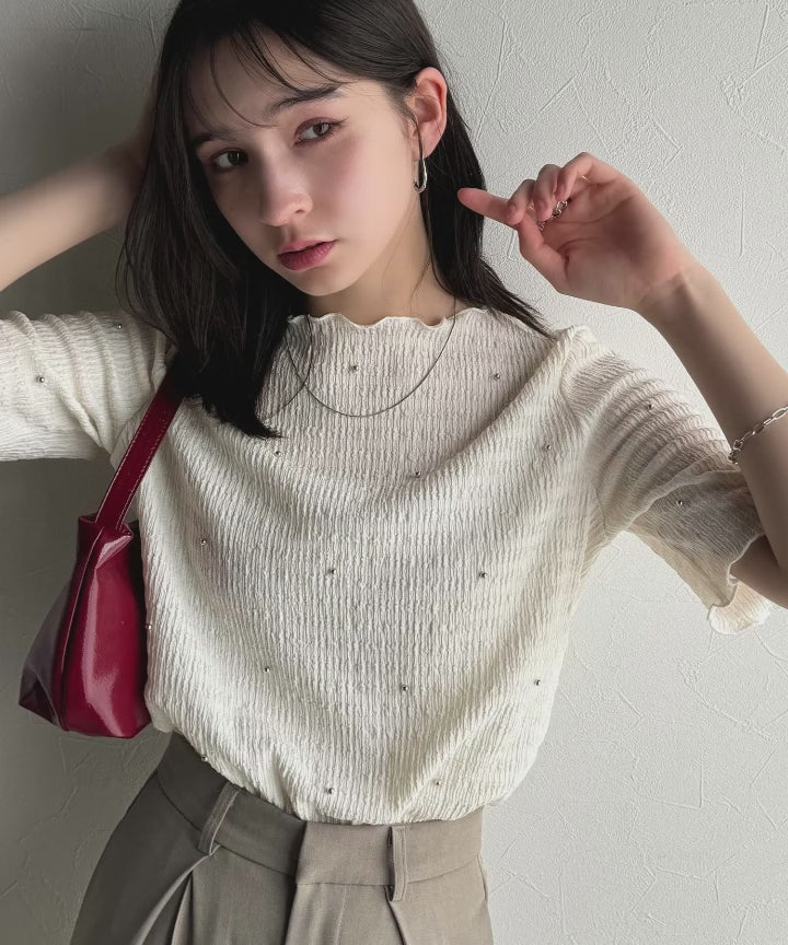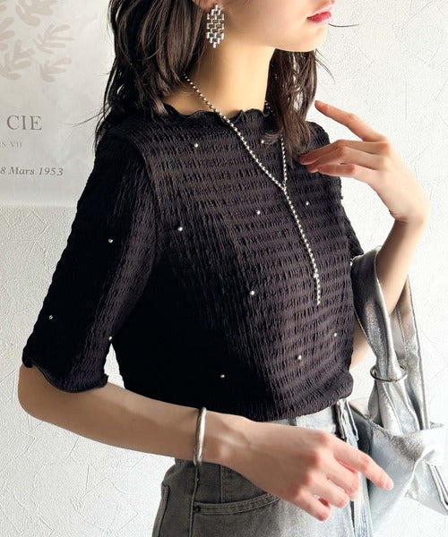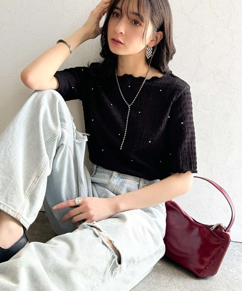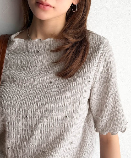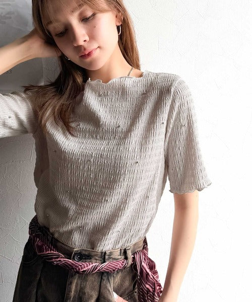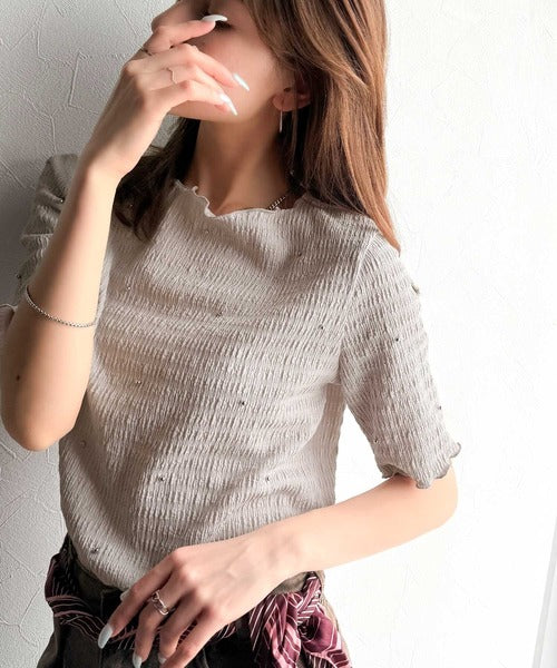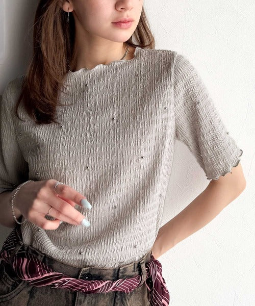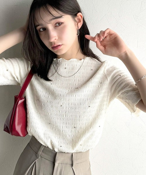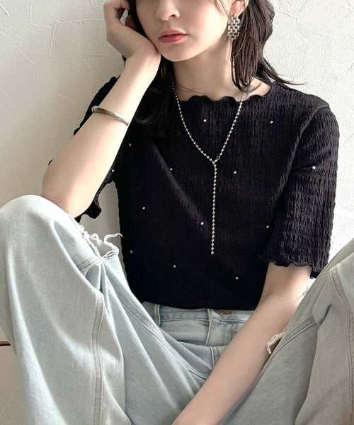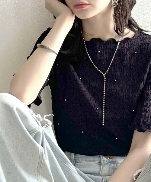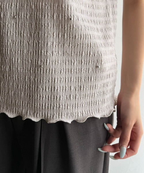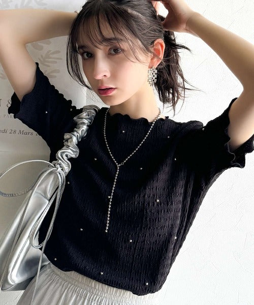 全体にちりばめられたドットスタッズが目を引く着映えカットトップス。
