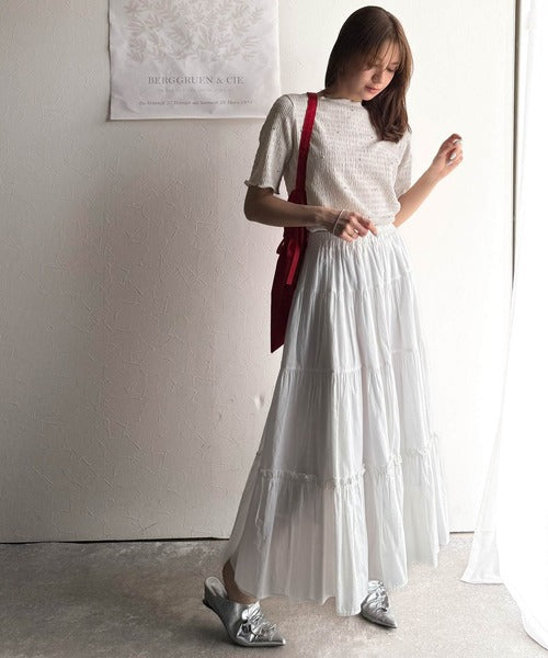 少しきれいめなスタイルを目指すなら、シアースカートやバルーンスカートと合わせてみても◎