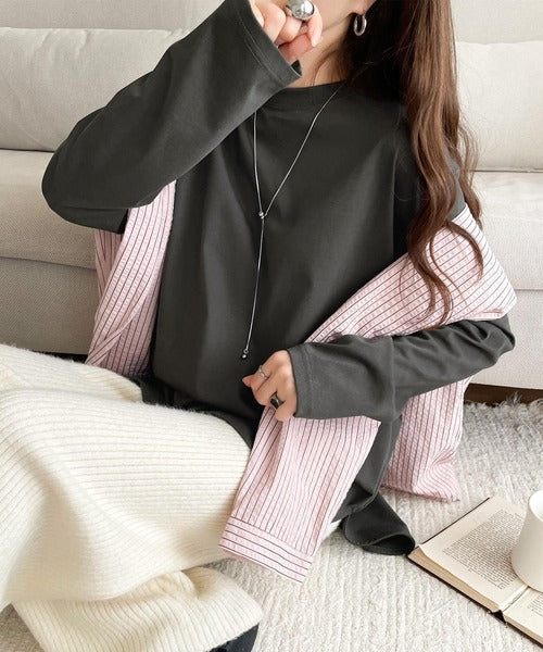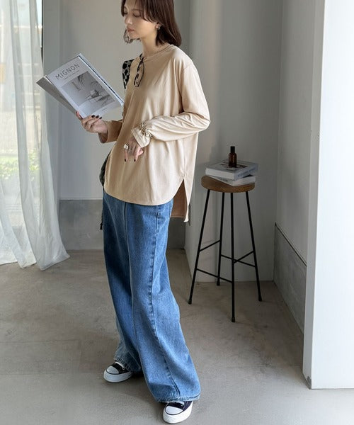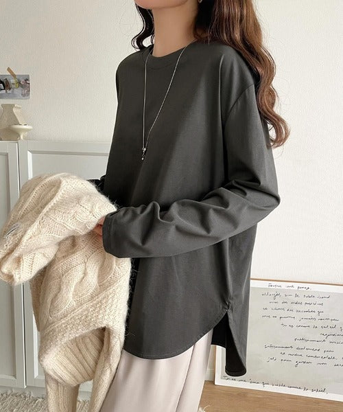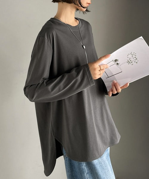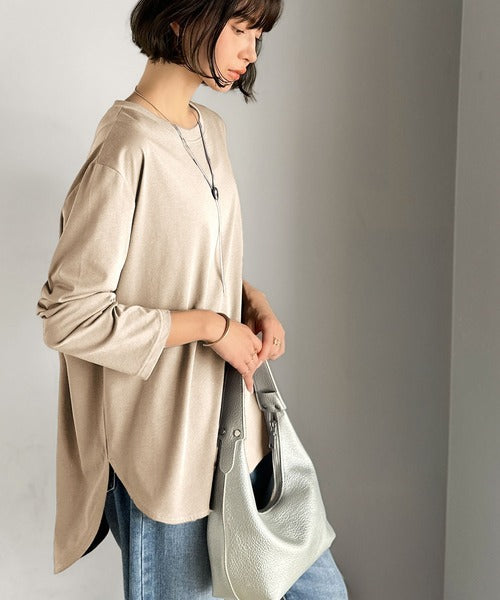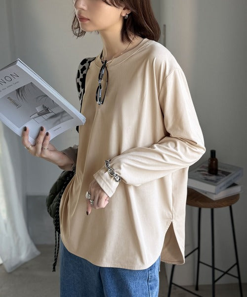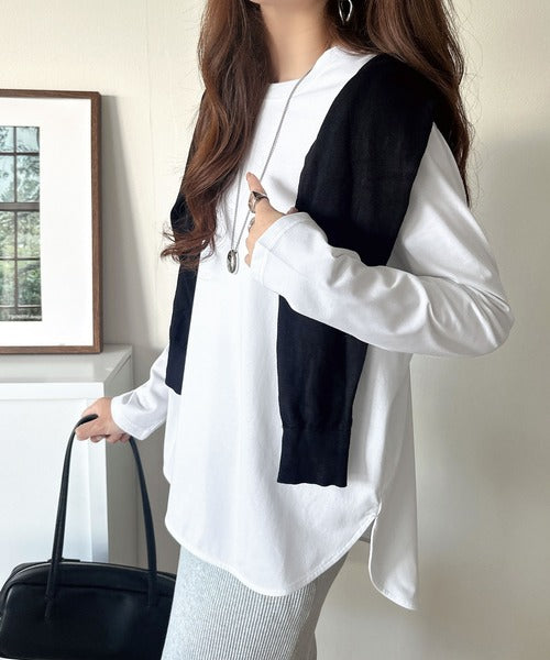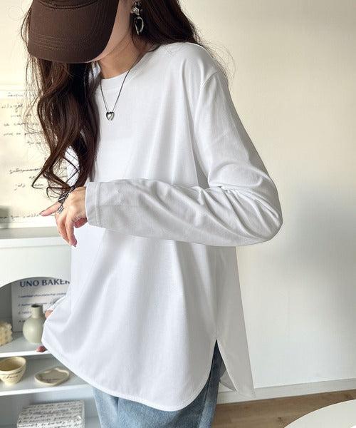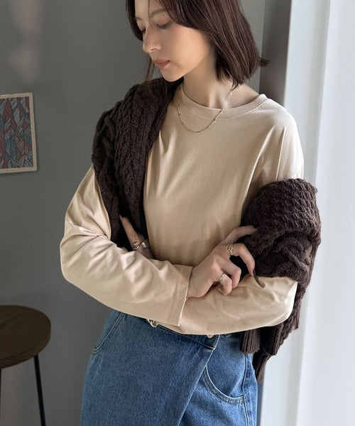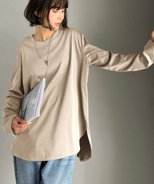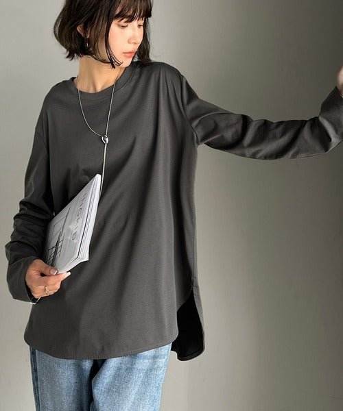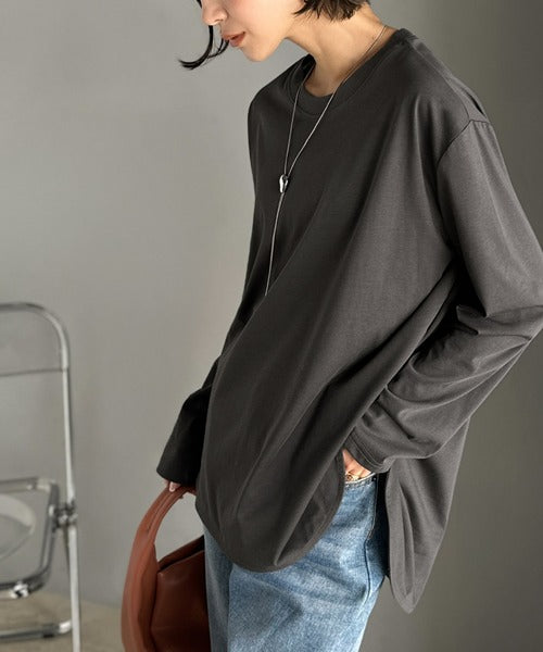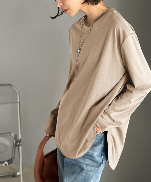 品よく、楽ちん。大人の余裕が漂う。シルケット素材 レイヤード ラウンドヘム 長袖 ロンTEE ce1020296