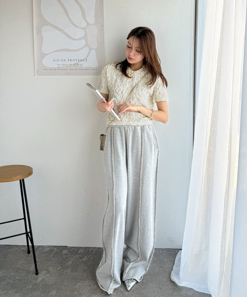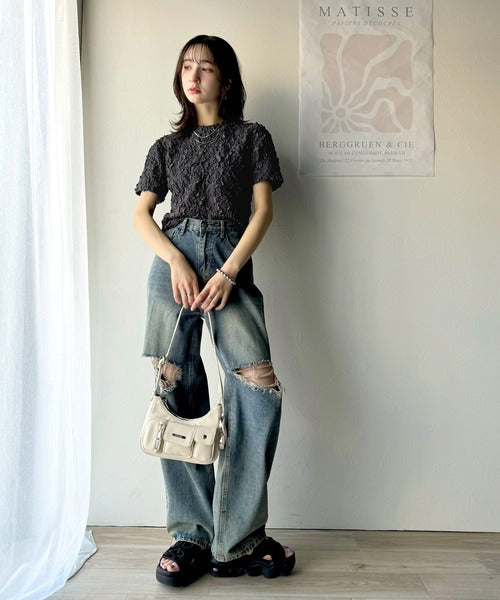 華やかな高級感を演出する。カットジャガード短丈Tシャツ(半袖) ce1050273