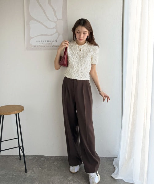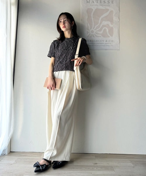 タイトめなサイズ感と短丈デザインで、ハイウエストのボトムスと相性抜群◎