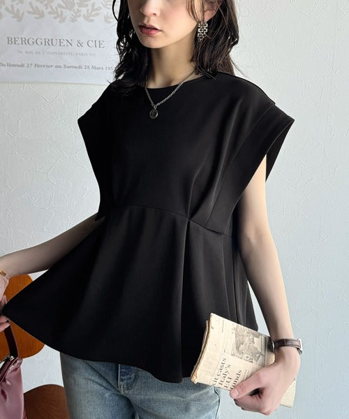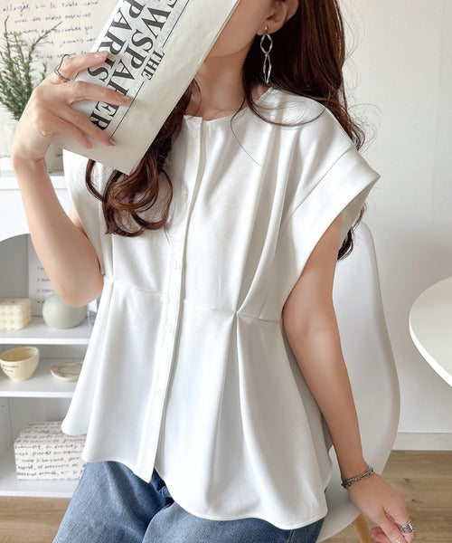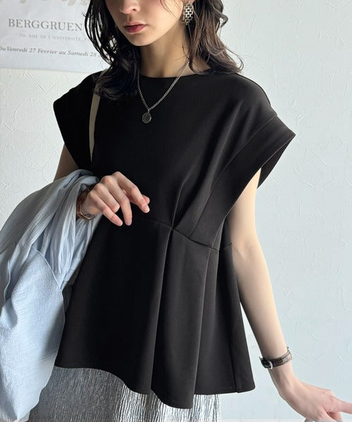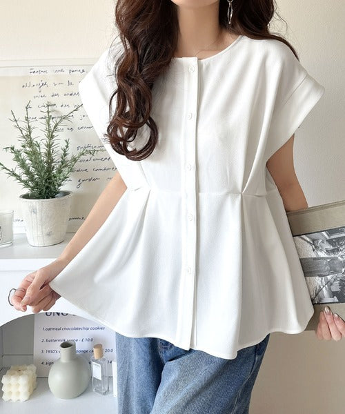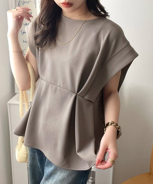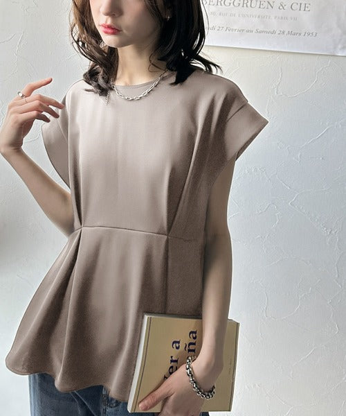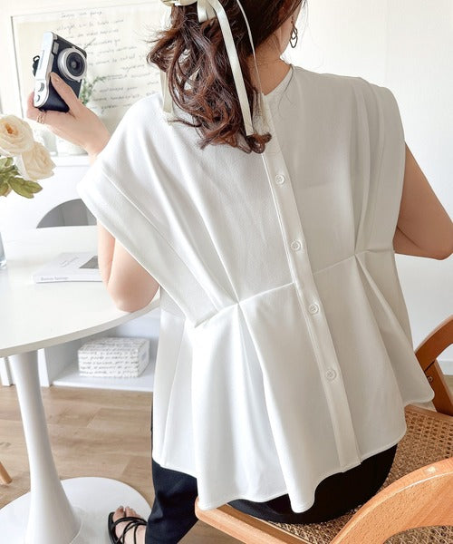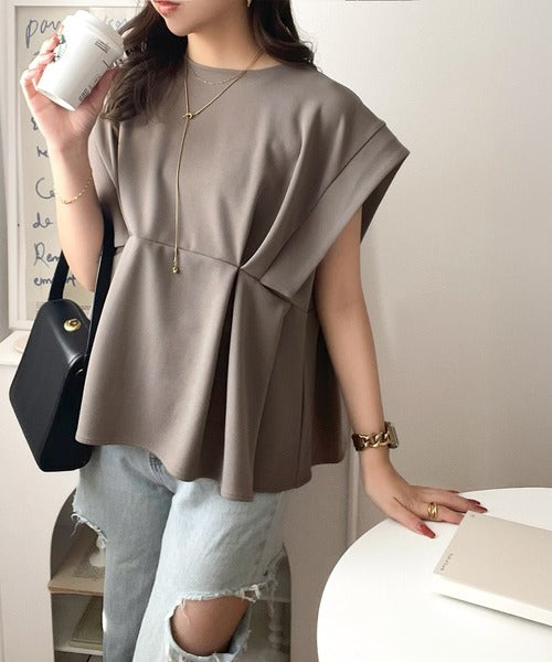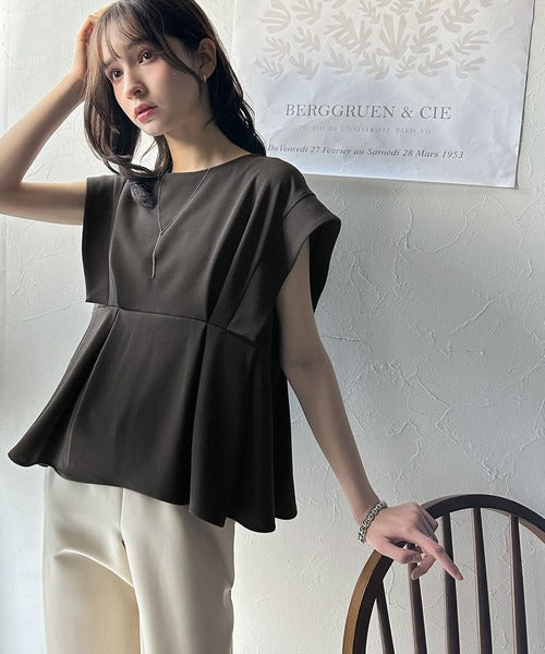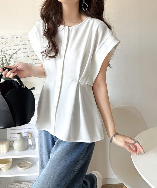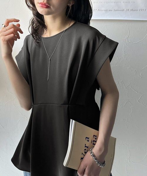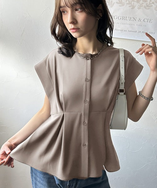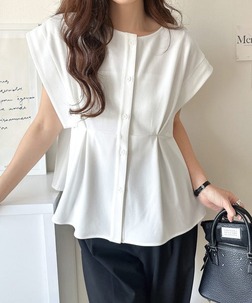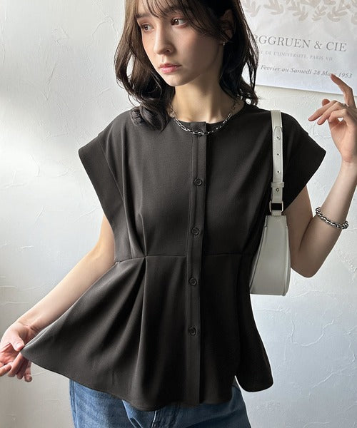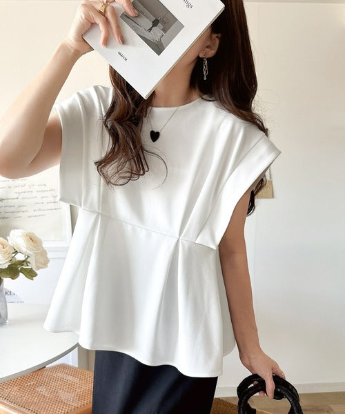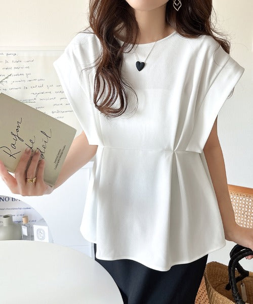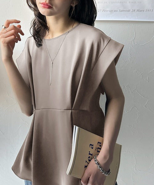一枚で上品なシルエットが際立つ、魅力的なウエストタックブラウス。