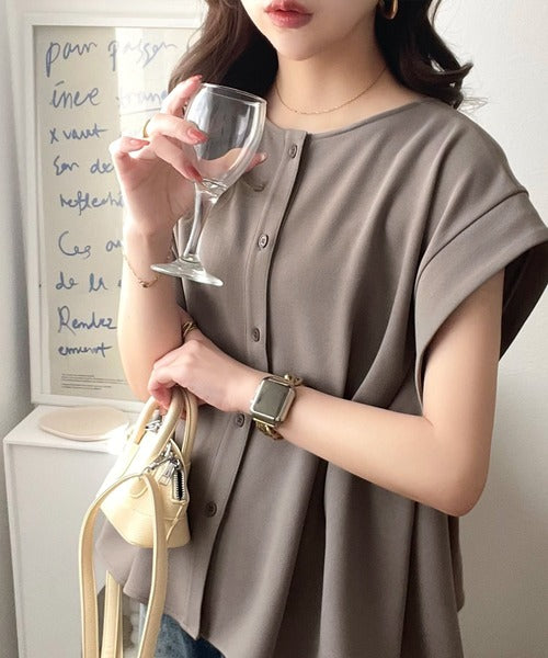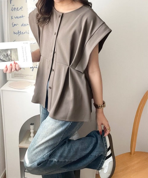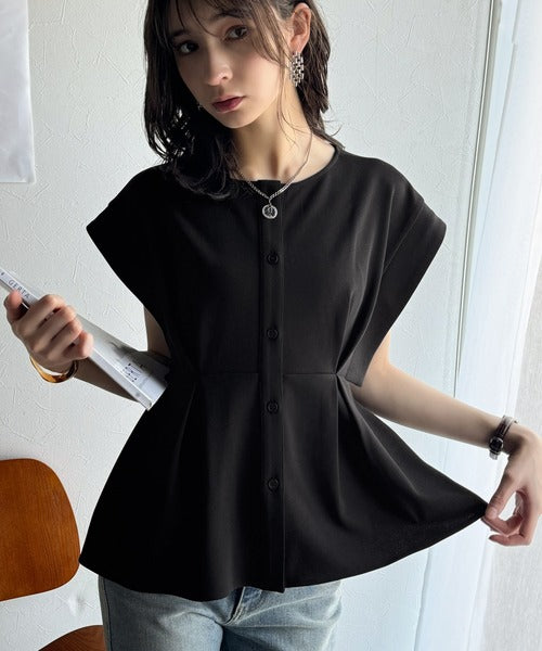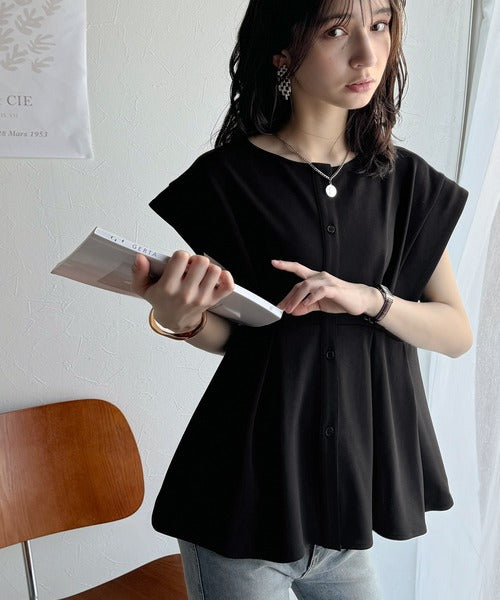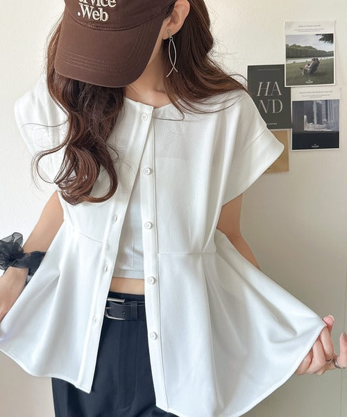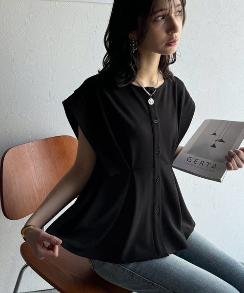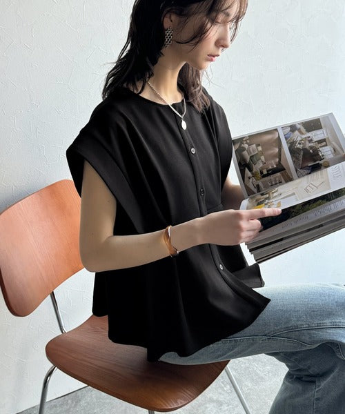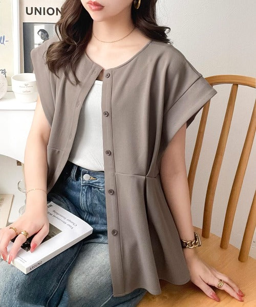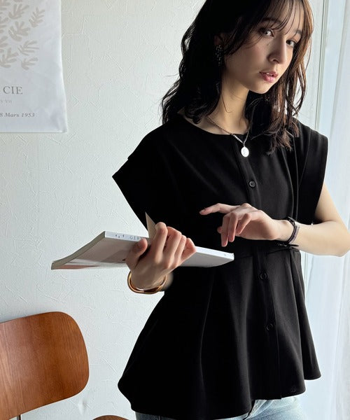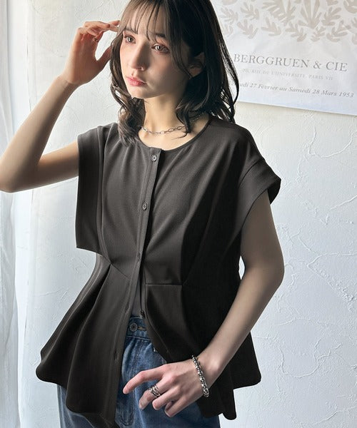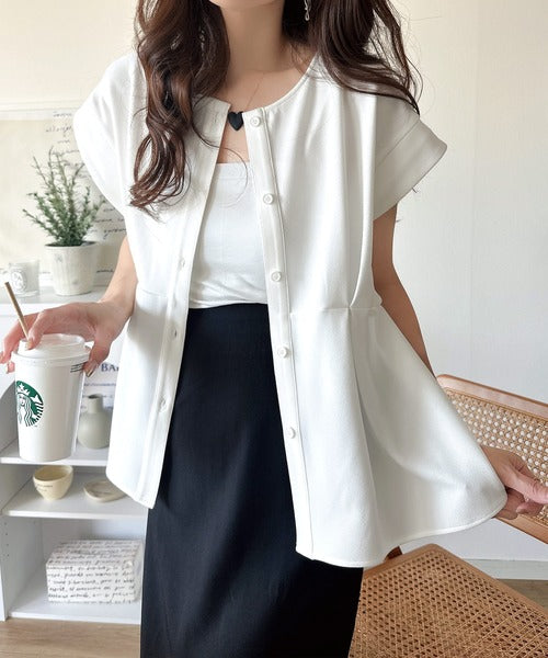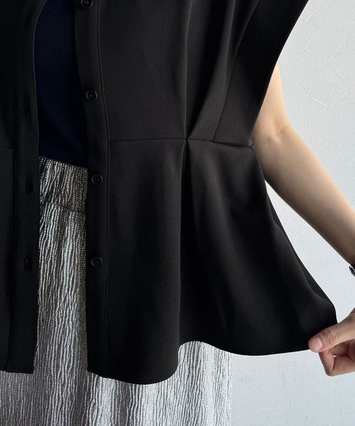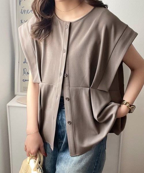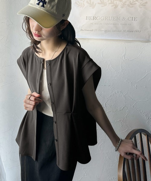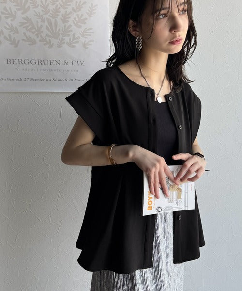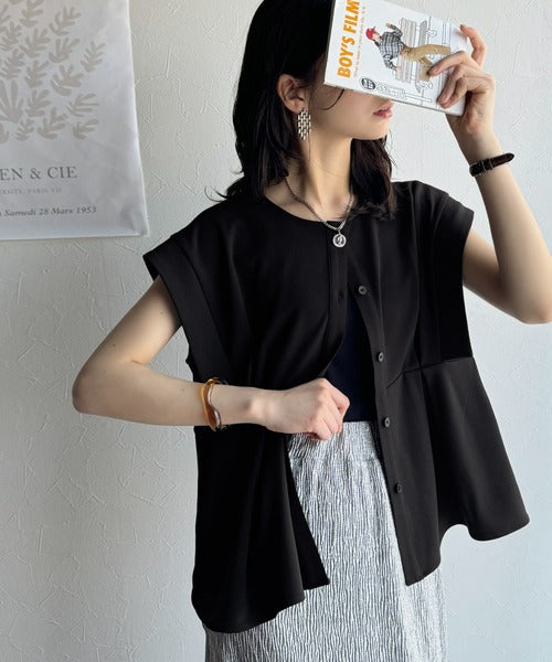 フロントの釦を開ければジレ風に、閉じればきちんと感のあるブラウスに