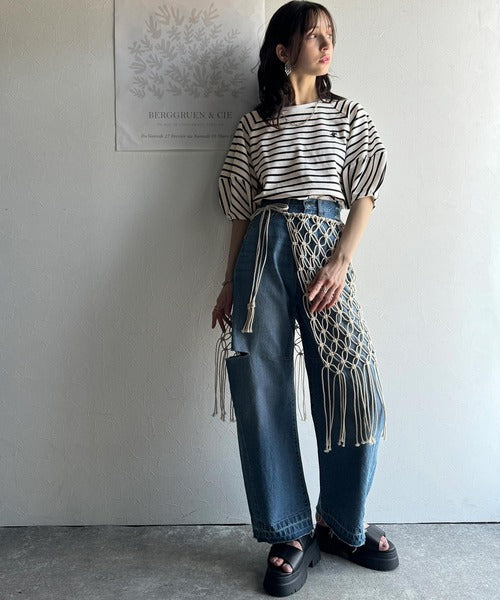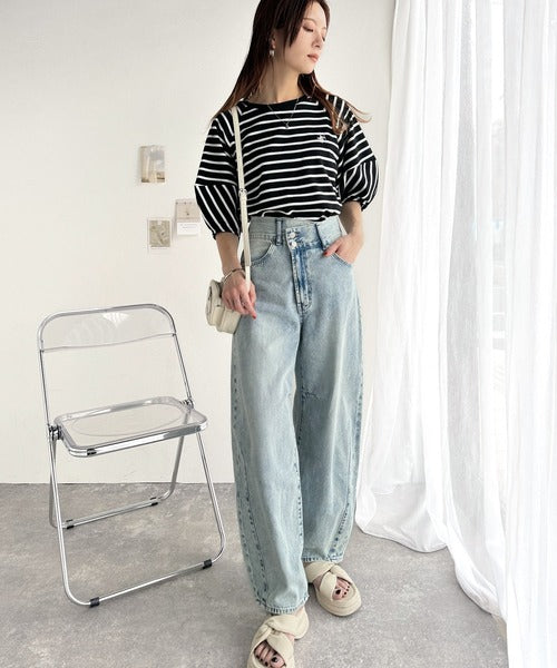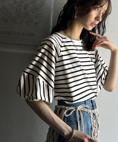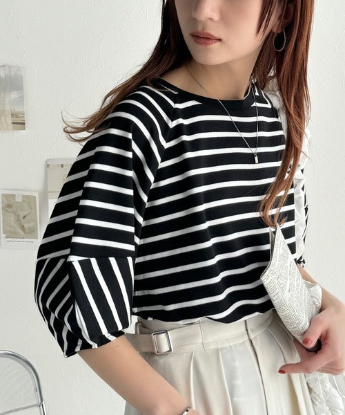 旬のランタンスリーブボーダートップス
