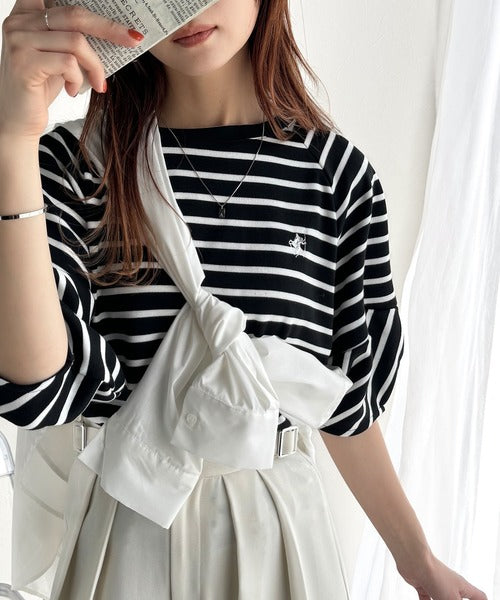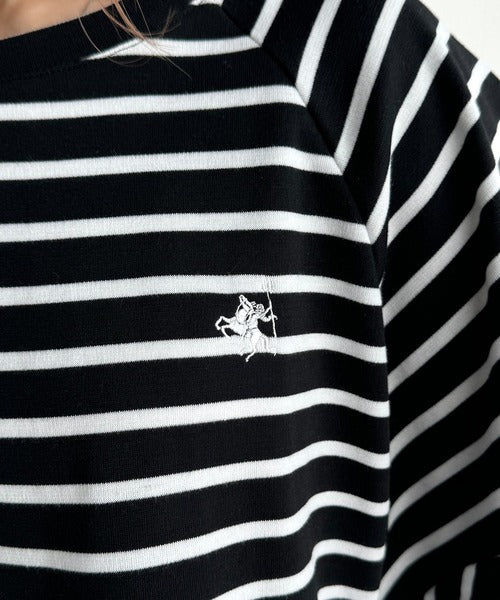 クラシックなボーダー柄に、遊び心あふれる胸元のワンポイント刺繍、